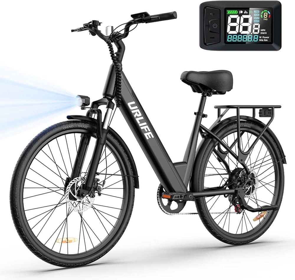0464 URLIFE 26" Electric Bike for Adults, 750W Peak Motor Ebike, 48V 10.4Ah, 60-Mile Max Range & Commuter E-Bike, Front Suspension & 7-Speed Ebikes