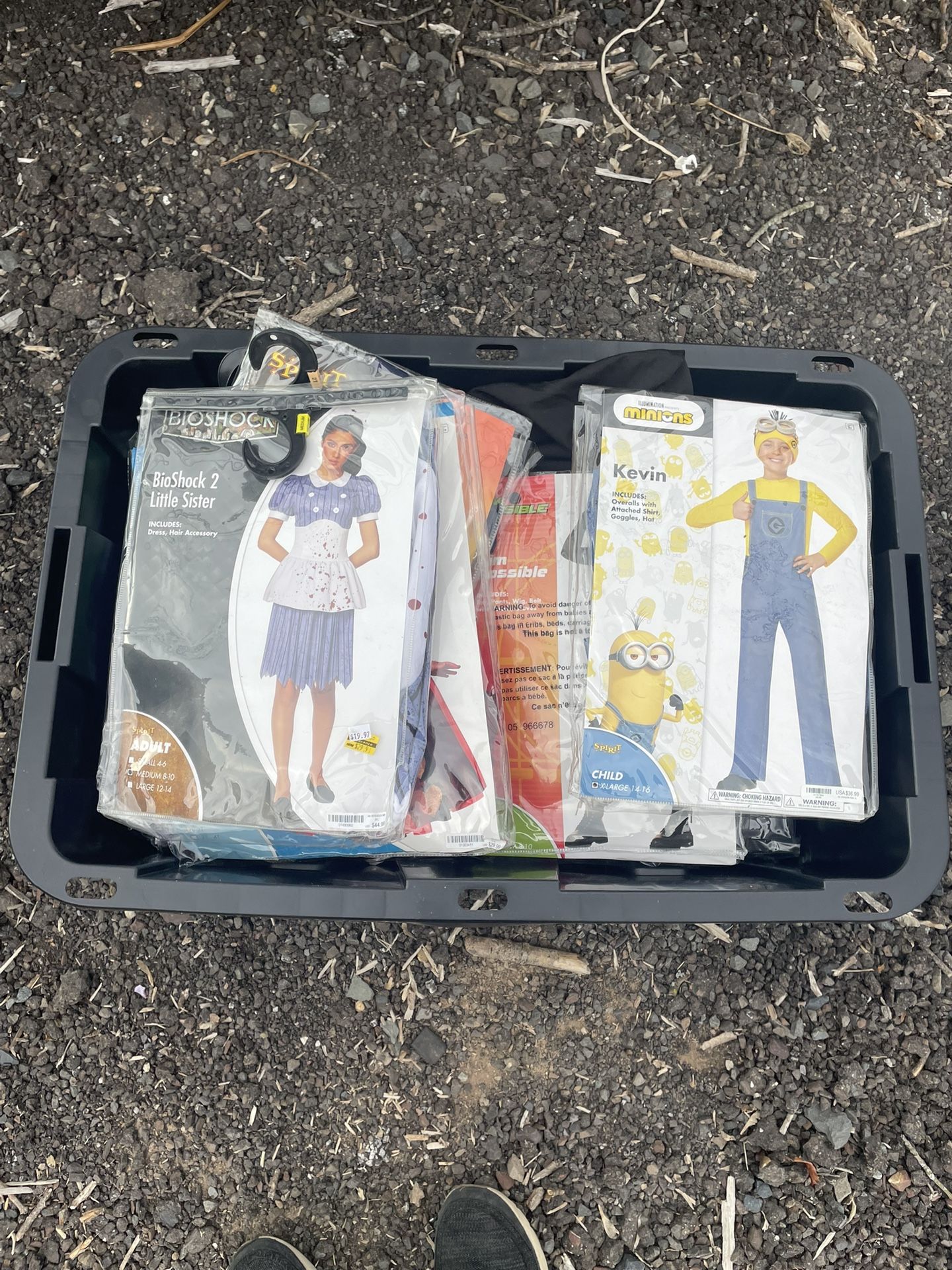 A bunch of costumes over 12 costumes include all sizes all conditions there are more pictures, but it will not let me do as many $20 take all (Bin not included can put in bag)