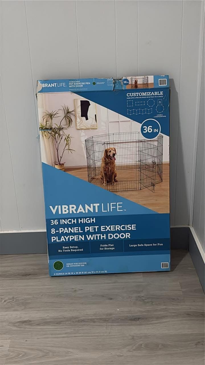 Vibrant Life 8-Panel Customizable Pet Exercise Playpen with Door, measuring 36 inches in height.