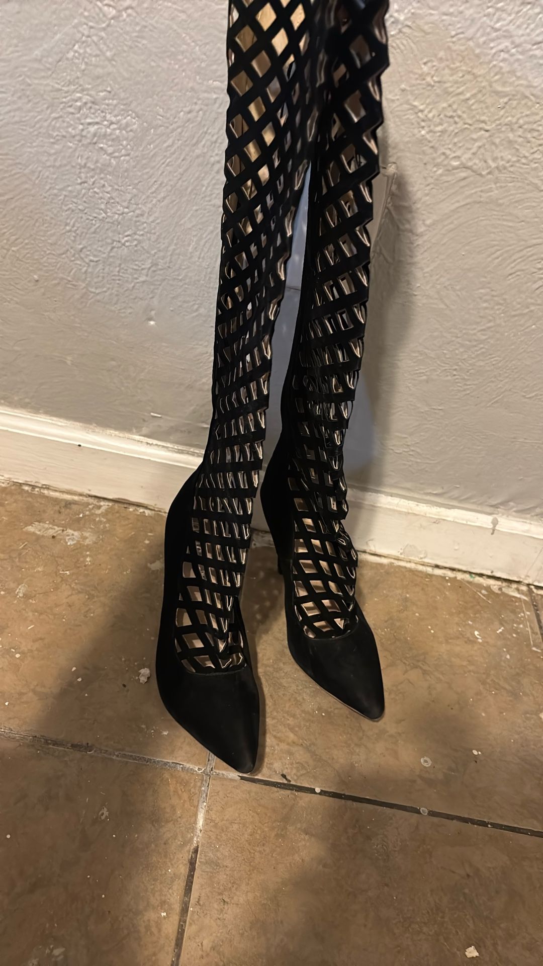 Black see-through boots heels