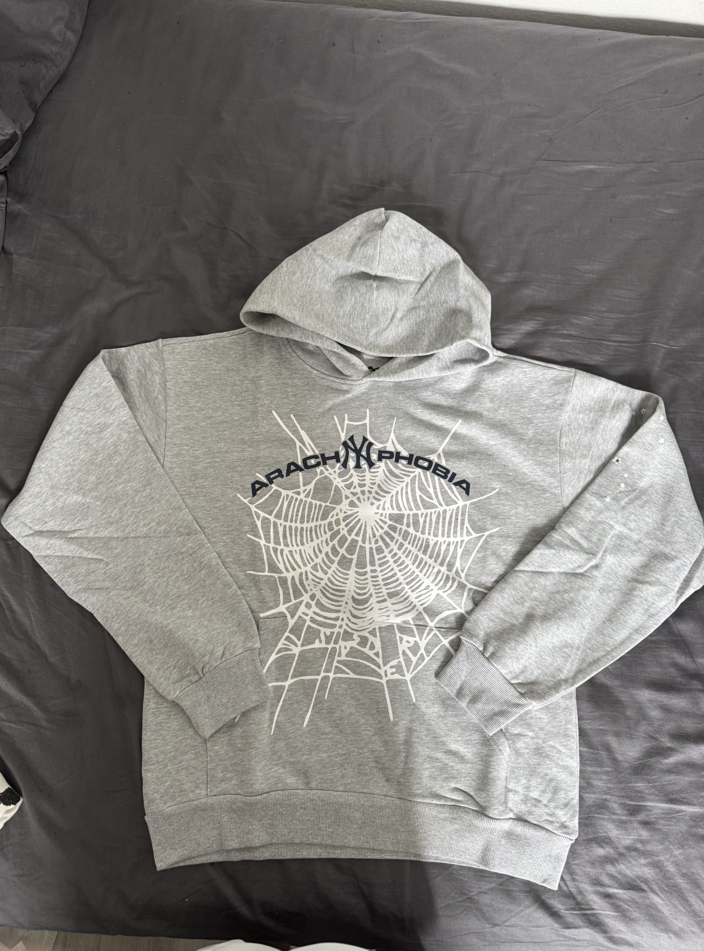 Brand New Grey Sp5der Hoodie with Black Arachnophobia & White Web
