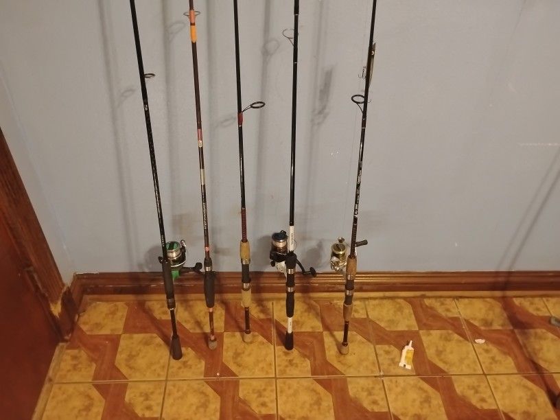 I have two All-Star rods the classic series one of them has an akuma avenger on it that's probably going to be one of the higher priced ones but I'm talking about I've got from $15 to $70 I also have a daiwaitula spinning rod with a lose reel upgraded handle I've got a quantum expression composite rod I have a dial rod with a spinning reel on it and I also have a real nice baitcaster that's not in the picture for $40 but it is posted thank you very much for looking and if you are interested just give me a shout and we'll get together okay have a good one