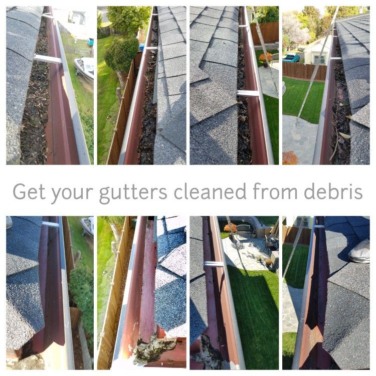 I can get debris from your roof and gutters cleared up. Message me for a details. I can do a quick quote for you. Moss killer and gutter covers are possible options also.