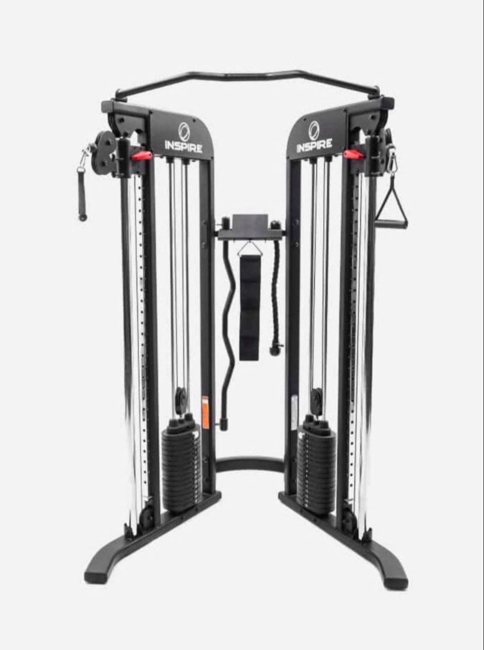 Inspire FTX Functional Trainer The Inspire FTX Functional Trainer is full of versatility but is one of the industry's smallest footprints in a full functional trainer. Constructed of heavy-duty steel and finished with a matte black powder coat, it's beautiful and durable. It comes standard with two, 165 lbs. weight stacks and thirty swivel pulley positions to allow for complete freedom in any direction for unrestricted exercises. Expand your workout potential on the FTX with the Adjustable Folding Bench (included with purchase). The Inspire Folding Bench offers 5 adjustable positions for any exercise and folds flat after your workout for storage. Stay motivated and reach your goals at home with unlimited access to first class workouts from our own elite trainers with the Inspire Fitness App, included with purchase. Follow custom training programs and track your progress. Let our trainers do the planning for you, just choose a workout and go! No excuses, only results. * Dual 165lb. Weight Stacks: (15) 10lb. weight plates & (1) 15lb. top weight * 1:2 resistance ratio RETAIL: $2,400.00
