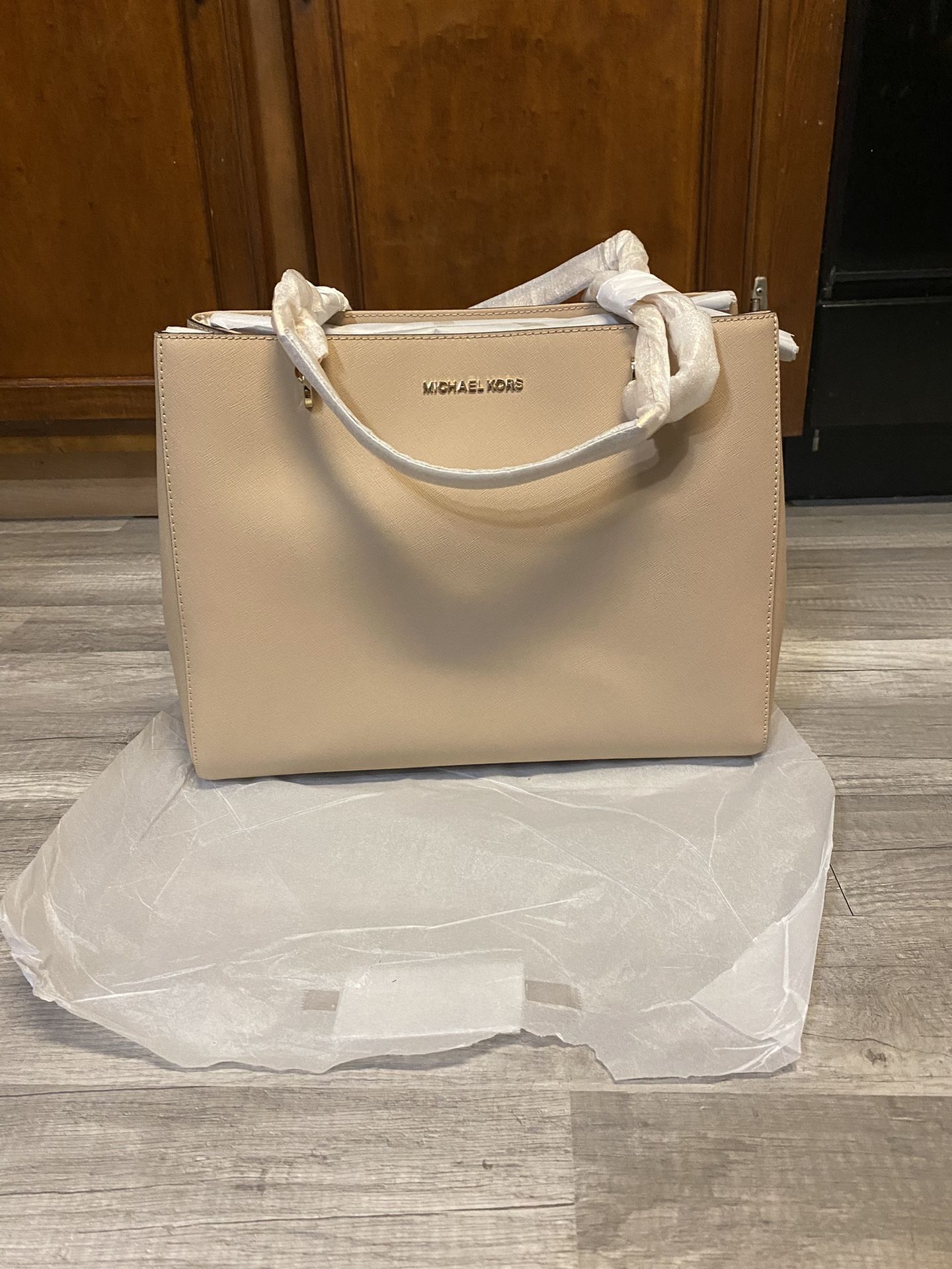Selling authentic Michael Kors purse! Has never been used and still comes inside the plastic bag and has the handles wrapped in paper, perfect for Mother’s Day gifts or for anyone. Measures 14 inches wide and 11 inches tall. Message me ASAP if I interested! :))