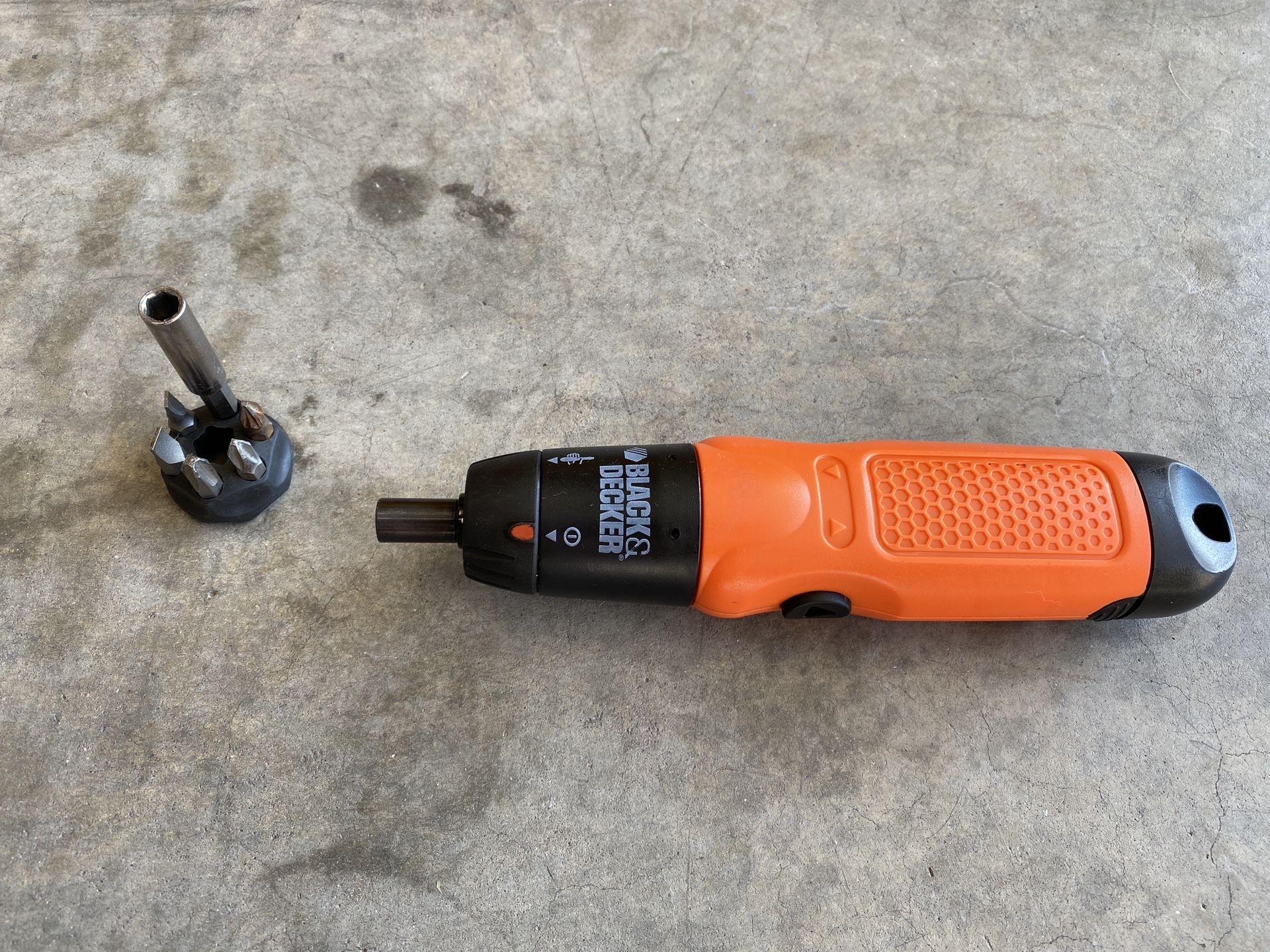 Black & Decker handheld screwdriver with bit set included! This is in great condition and a great addition to any toolbox home or shop. Make this yours today!