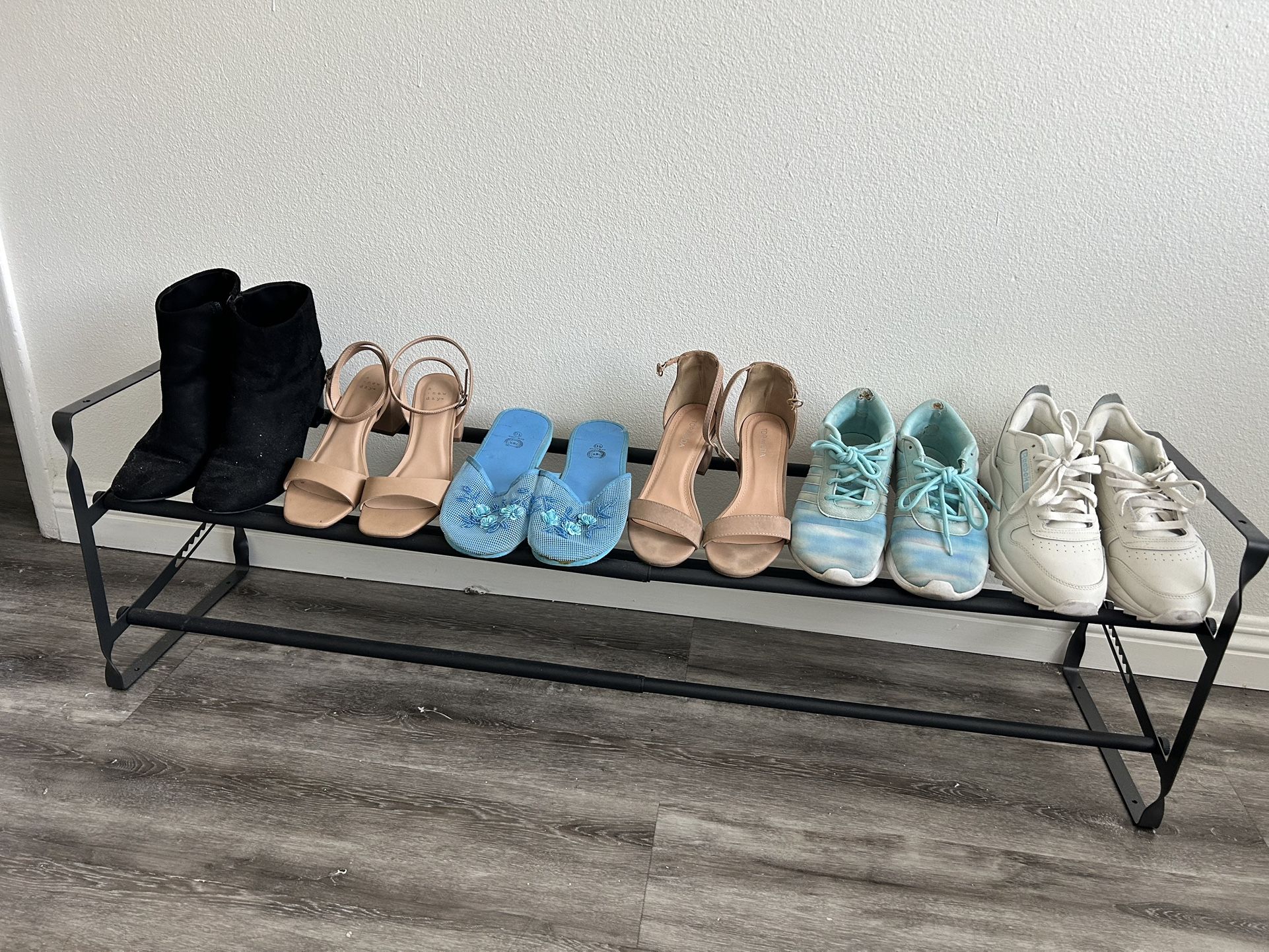 Expandable shoe rack. Can hold 6-14 shoes depending on how much you expand it. Great for saving space in your closet! Basically still in NEW condition. I'm selling it because I am moving. Pickup in Whittier.