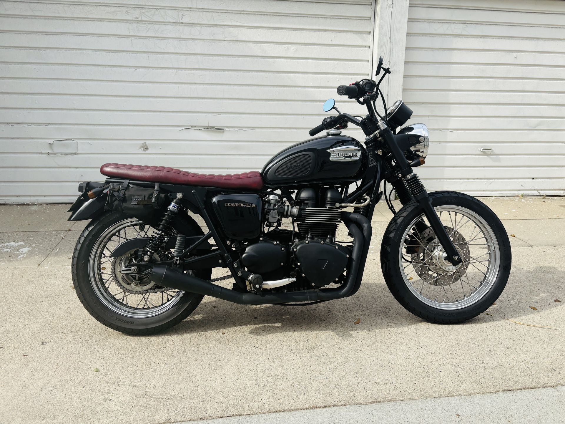 2007 Triumph Bonneville, 865cc. Clean title. Clean body. New battery within the last year. New tires within last 2 years. It comes with bike cover, front fender, and sissy bars. I’m the second owner. It has a ton of zip and can get up and go on the highway. Low mileage. Carbureted engine. I can send you a video of its quick start. I bought it in 2022 and it’s been consistently smooth and dependable. I have to sell it because my new apt doesn’t have a garage.