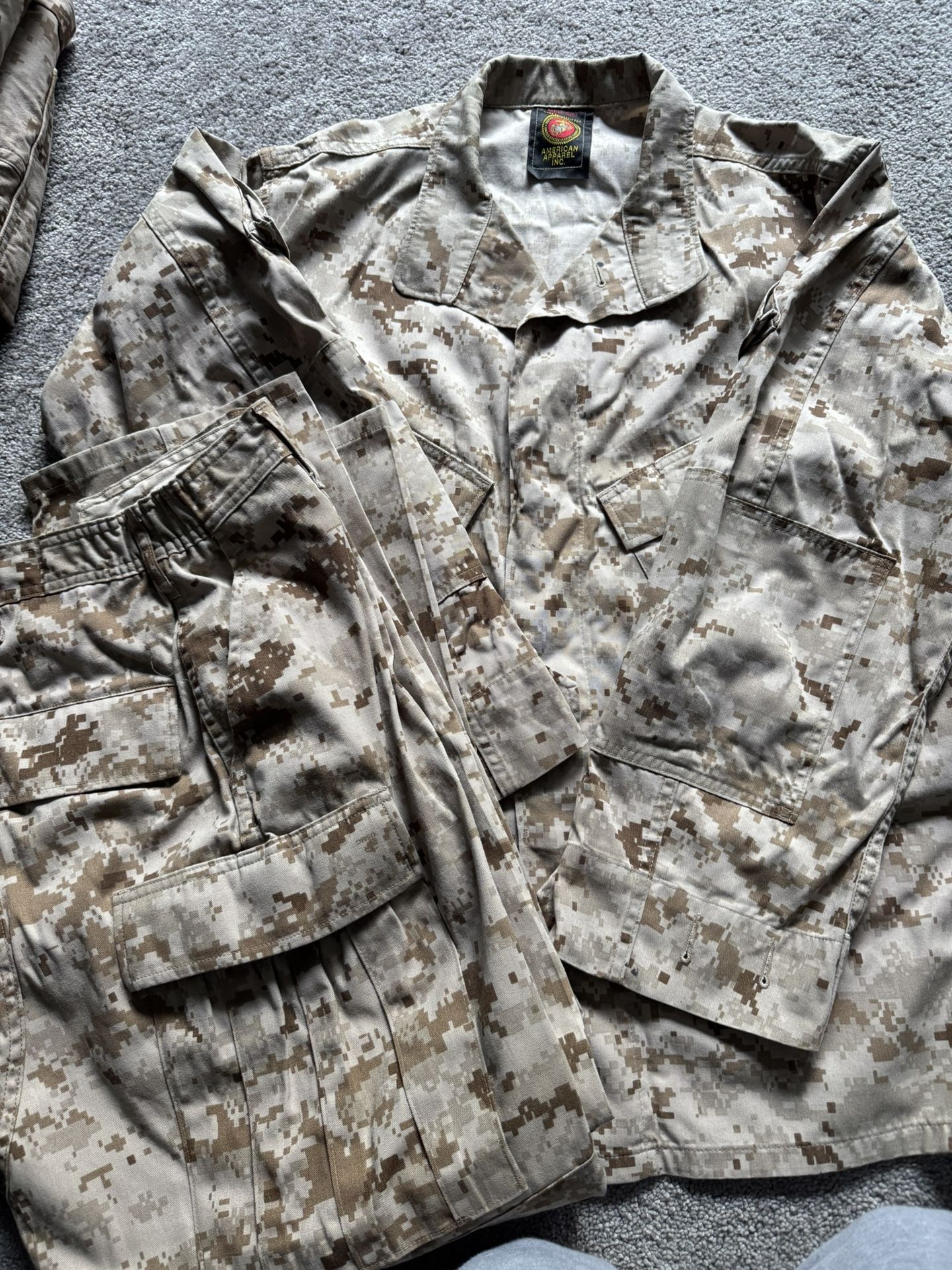 United States Marine Corps Desert MARPAT Combat Utility Top and Pant Utility Top Size: Med Short Pants size: Large short Waist 35 - 39 in Inseam 26 1/2 to 28 1/2 in