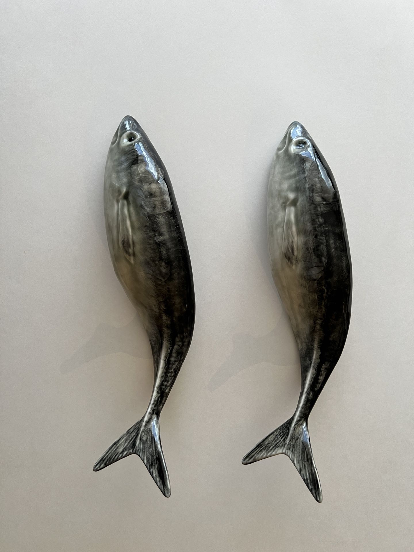 Two exquisite Portuguese ceramic fish sculptures. Realistic depiction. Prestige condition. 14 inches long and 3 1/2 inches wide at its widest spot. See https://offerup.co/faYXKzQFnY?$deeplink_path=/redirect/