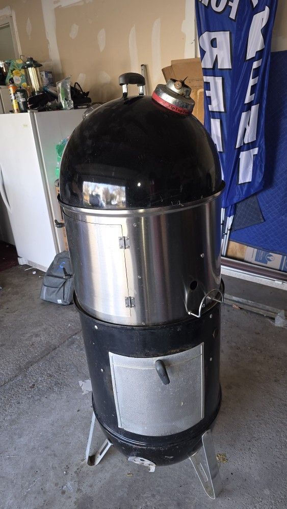 22" Weber Mountain Smoker. Comes with rib hanger, 24 hooks, tip top temp, vortex basket, extended section,and digi 3 temperature controller. Vents already setup for the controller. Asking 300.