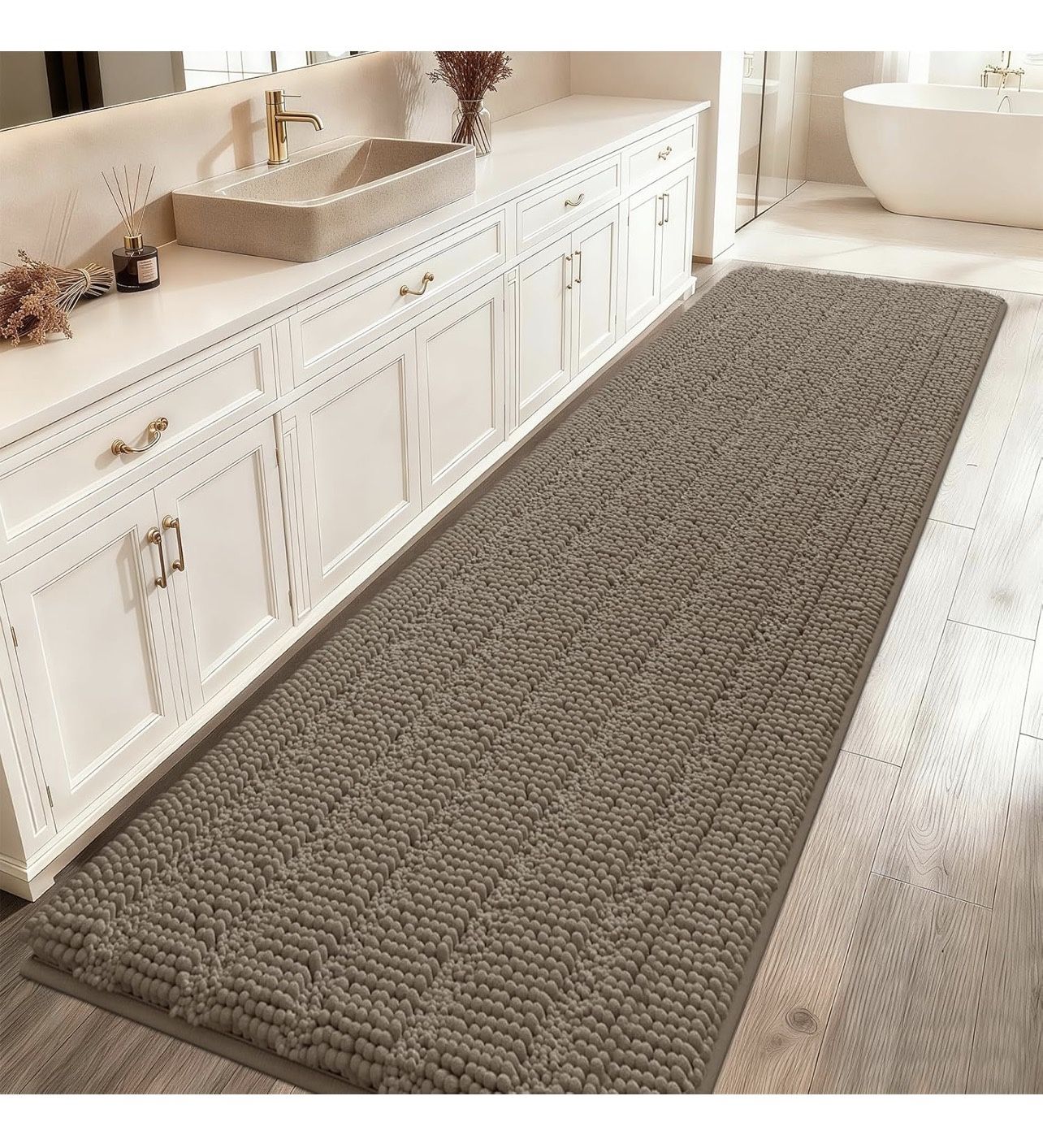 Brandnew Striped Dark Beige Bathroom Rug Mat 47.5"x17" Ultra Soft, Non Slip Chenille Bath Rugs, Absorbent Plush Shaggy Bath Mats for Bathroom, Bedroo