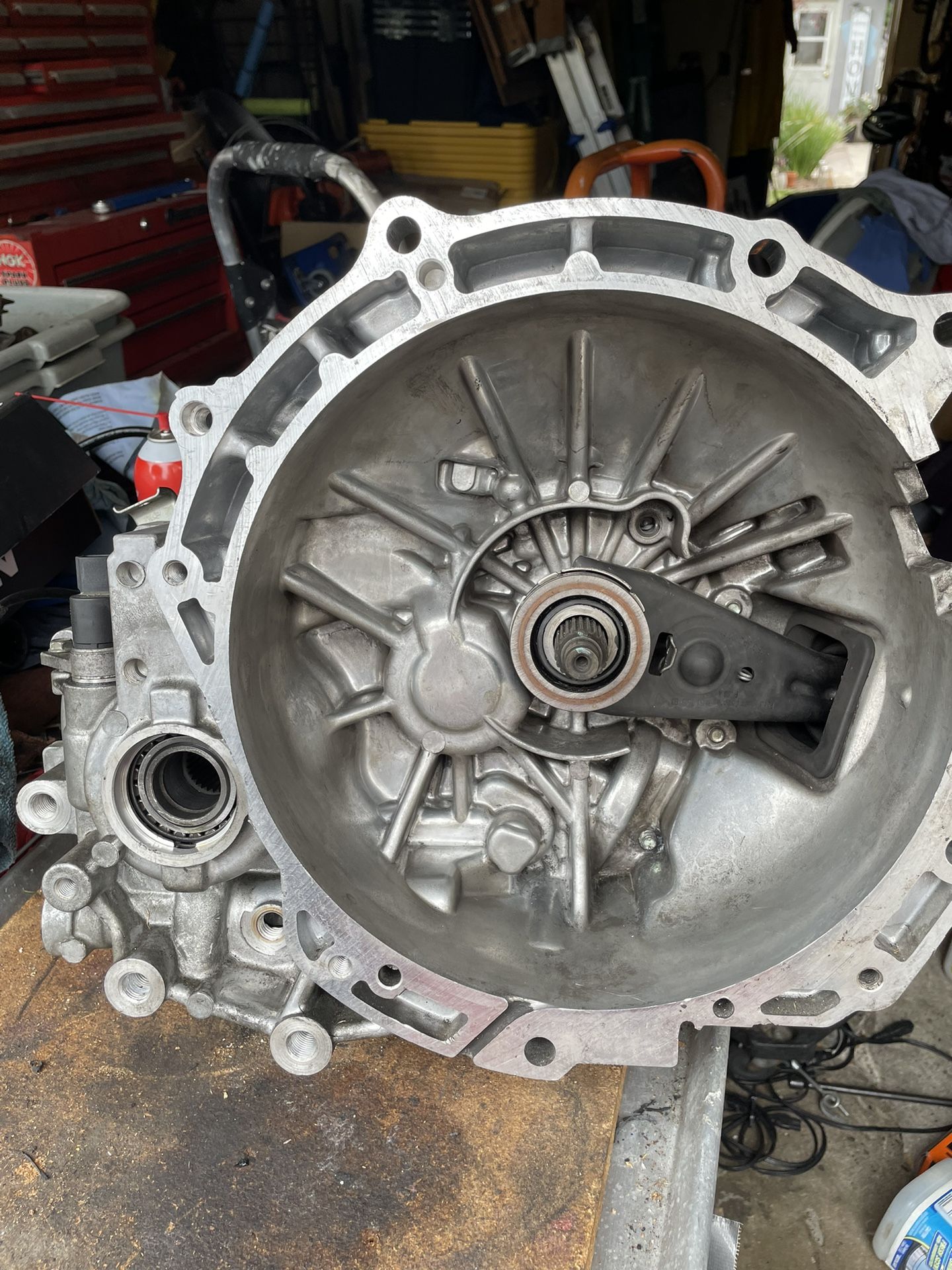 This is a manual transmission out of a 2006 Mazda 3. The third gear synchro is shot. The rest of the gears are great. It can be rebuilt or used for parts.