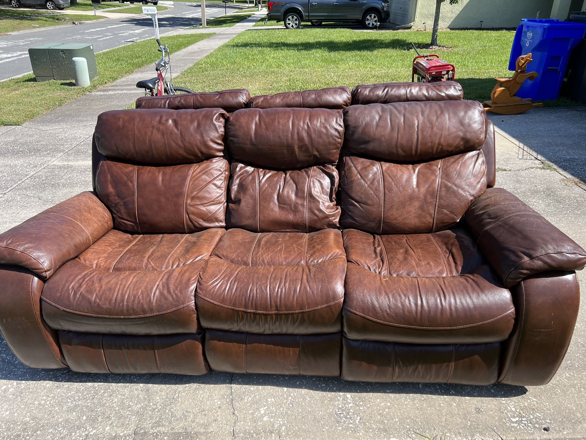 Worn and used. Just need cleaned up or covered. Sides recline