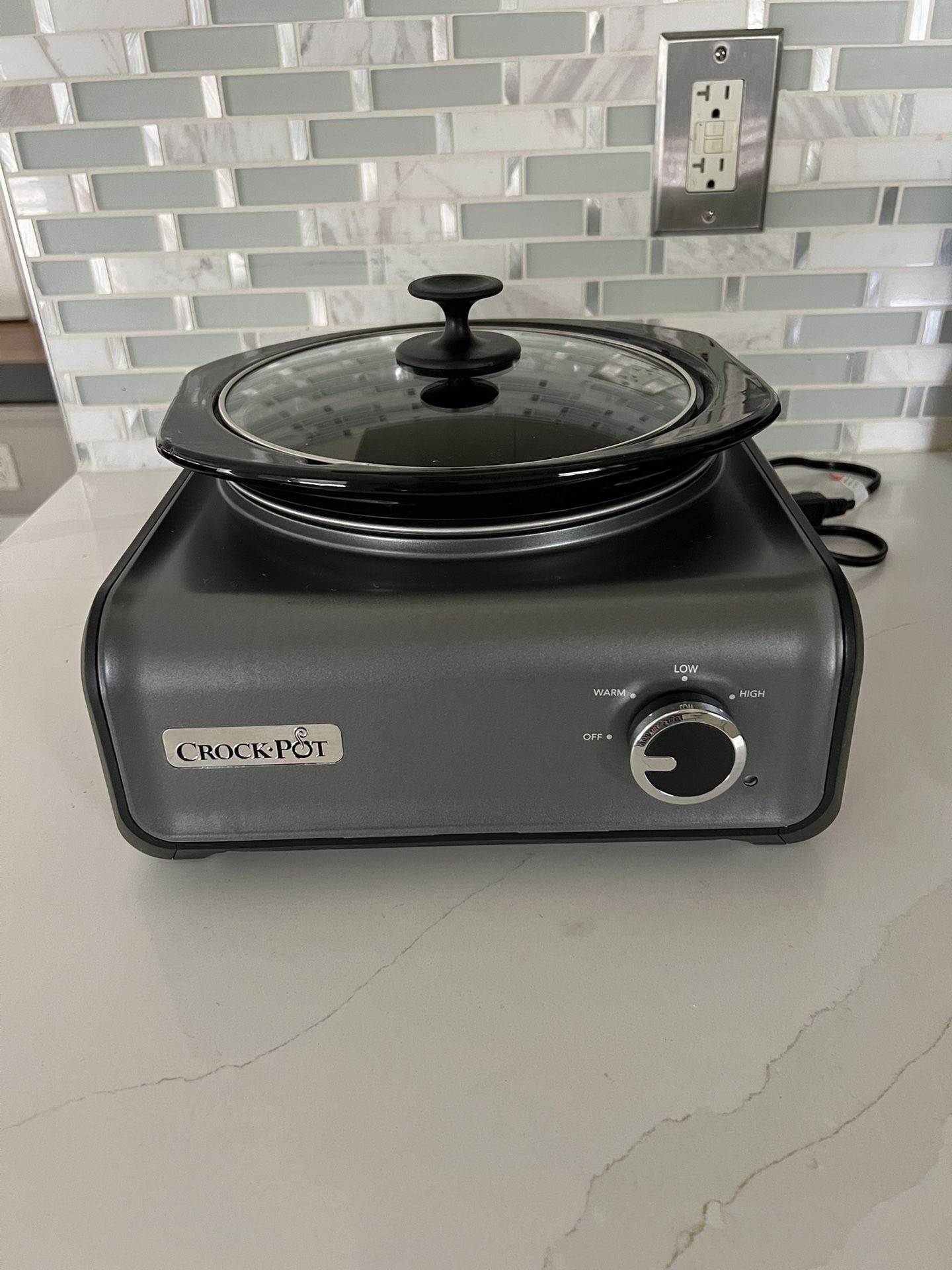 Brand: Crock-Pot Model: SCCPMD2-CH Color: Gray Capacity: 2.5 qt Type: Slow Cooker Number of Settings: 3 Material: Ceramic Finish: Stainless Steel Power Source: Electric Voltage: 120 V Cable Length: 60 in Components Included: Base, Bowl, Lid Features: Dishwasher Safe, Easy Clean, Keep Warm Function, Microwave Safe, Oven-Safe, Portable, Hook Up Region of Manufacture: China Compact and Functional: The CROCK POT Hook-Up SCCPMD2-CH Round Slow Cooker is a versatile appliance perfect for hosting parties or gatherings. With a 2.5 quart capacity and three settings/programs, this electric slow cooker is designed for easy use and convenient meal preparation. The ceramic material ensures even heat distribution, while the keep warm function keeps your dishes at the ideal temperature. Additionally, the portable design and linkable connectable feature make it a practical choice for connecting multiple slow cookers for larger events. With its gray color and included components, this Crock-Pot model is a great addition to any kitchen. Almost new, used one time. Look the pictures for details. Hablo español.