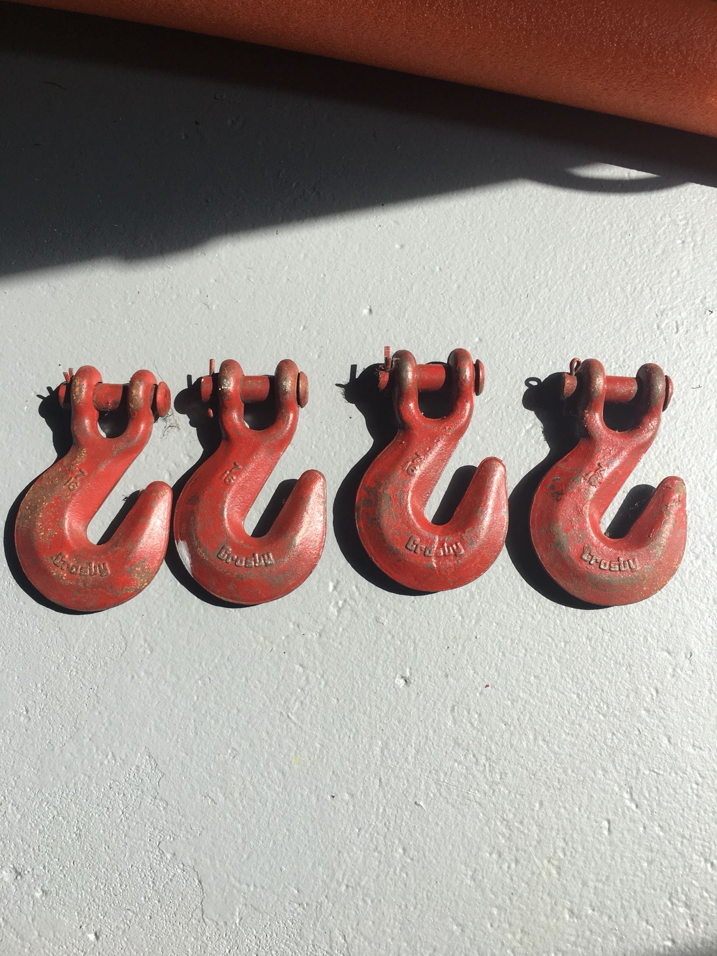 These are new just some scratches from sitting they are Made by Crosby 7/16 slot for chain $5 each or all for $15