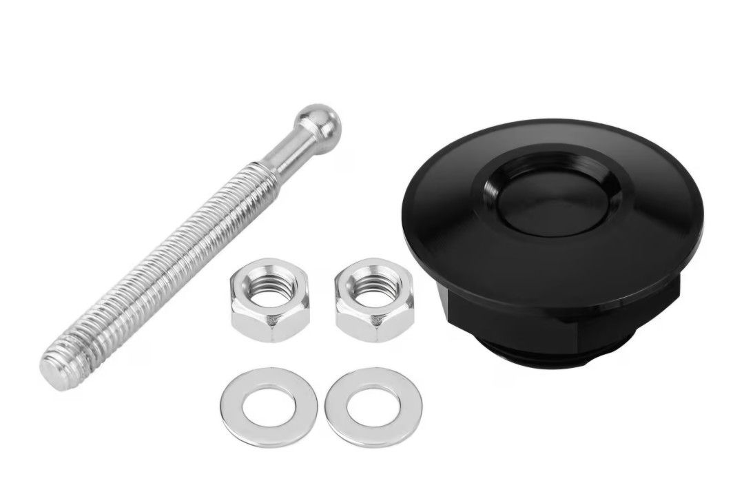 The 2 Pack Quick Latch Hood Pins in Black are universal lock clip kits designed for hood panels. With a size of 2.44 inches and a weight of 1.08 pounds, these push-button hood pins come in a convenient 2-pack. Suitable for placement on the left, front, and right sides of vehicles, these hood pins provide a secure and stylish solution for securing your hood panel in place.