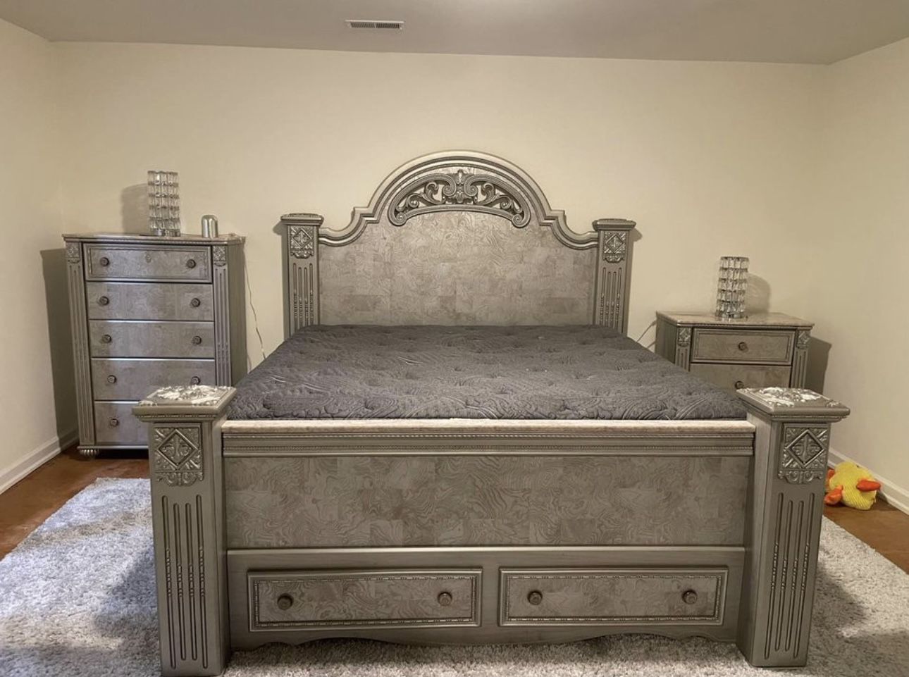 Excellent condition. Im moving thats why im selling. King size bed Electrical adjustable King size mattress 2 drawers 1 makeup desk