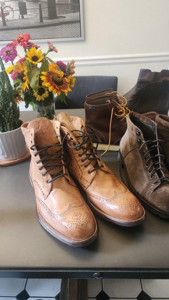 Beautiful hand crafted shoes to the highest quality in Italy. NEW! These could last a lifetime and the classic wingtip style is timeless. Nearly $500 with taxes. Asking $200. They do run a bit big to allow for more room or thicker socks. If you're a size 14 these should be big enough. Other nice boots available. Pickup in Brookhaven. From website: Step into our iconic Cesar Toscana Boot; a fan favorite inspired by European fine styling Inside zipper for easy put on Leather bottom with half rubber Vibram sole and heel for durability Blake construction for supreme flexibility Buff calf upper is treated in our patented dip-dyed process with eco-friendly and sustainable vegetable dyes The dip-dyed process results in supple, flexible and soft leather that easily molds to your foot Hand-burnished by our skilled artisans to show the unique vintage details of the dip-dyed process which results in a one of a kind product Comfortable from the first step; No break in period required Handcrafted 100% in Toscana, Italy in over a four day journey for comfort, quality, flexibility and durability Tags: dress shoes loafers Allen edmunds
