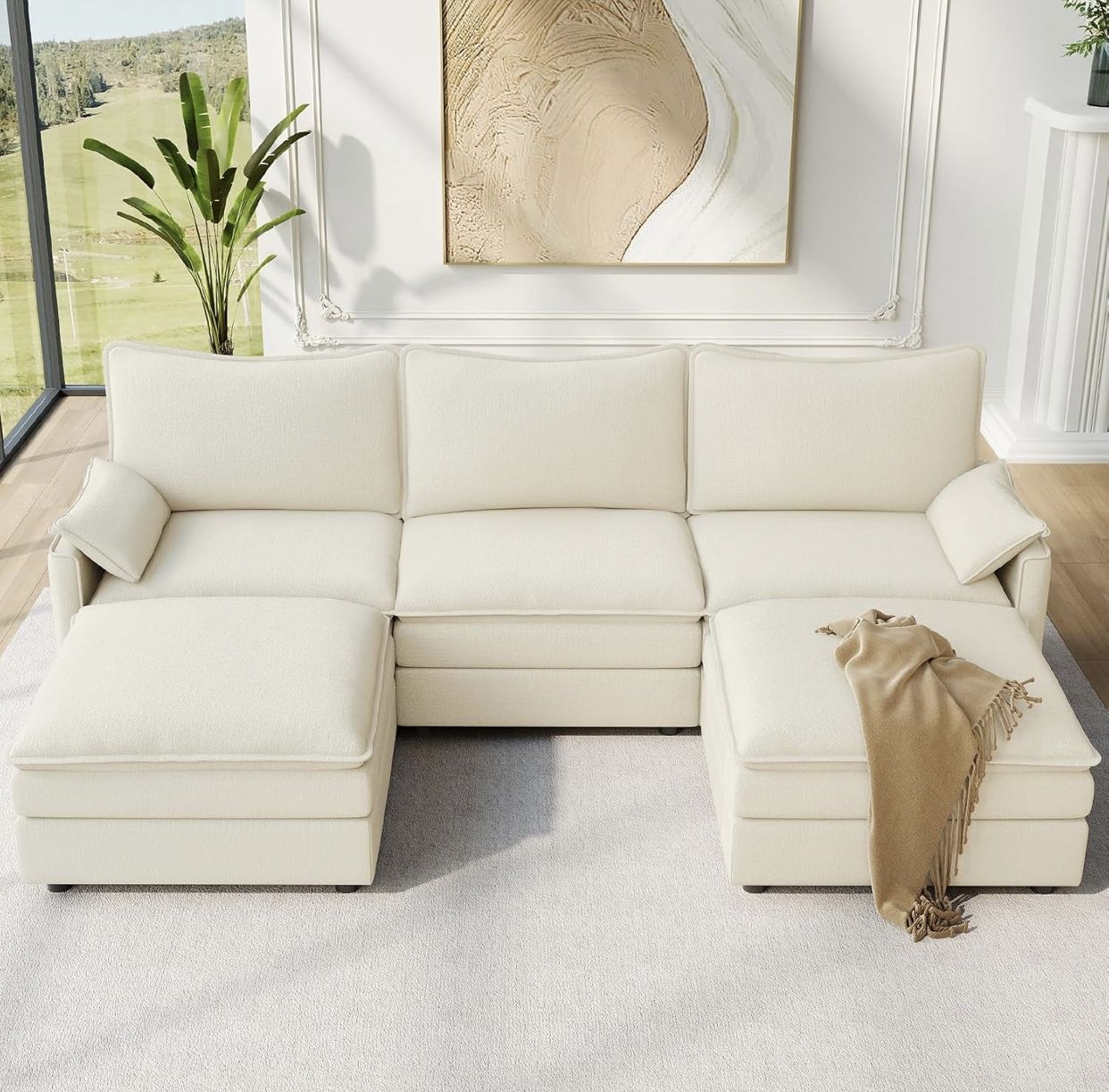 Beige 108" U Shaped Sectional Couch, Comfy, Modern Cloud Modular Sectional Sofa with 2 Ottoman Deep Seat - Chenille fabric Brand new couch.