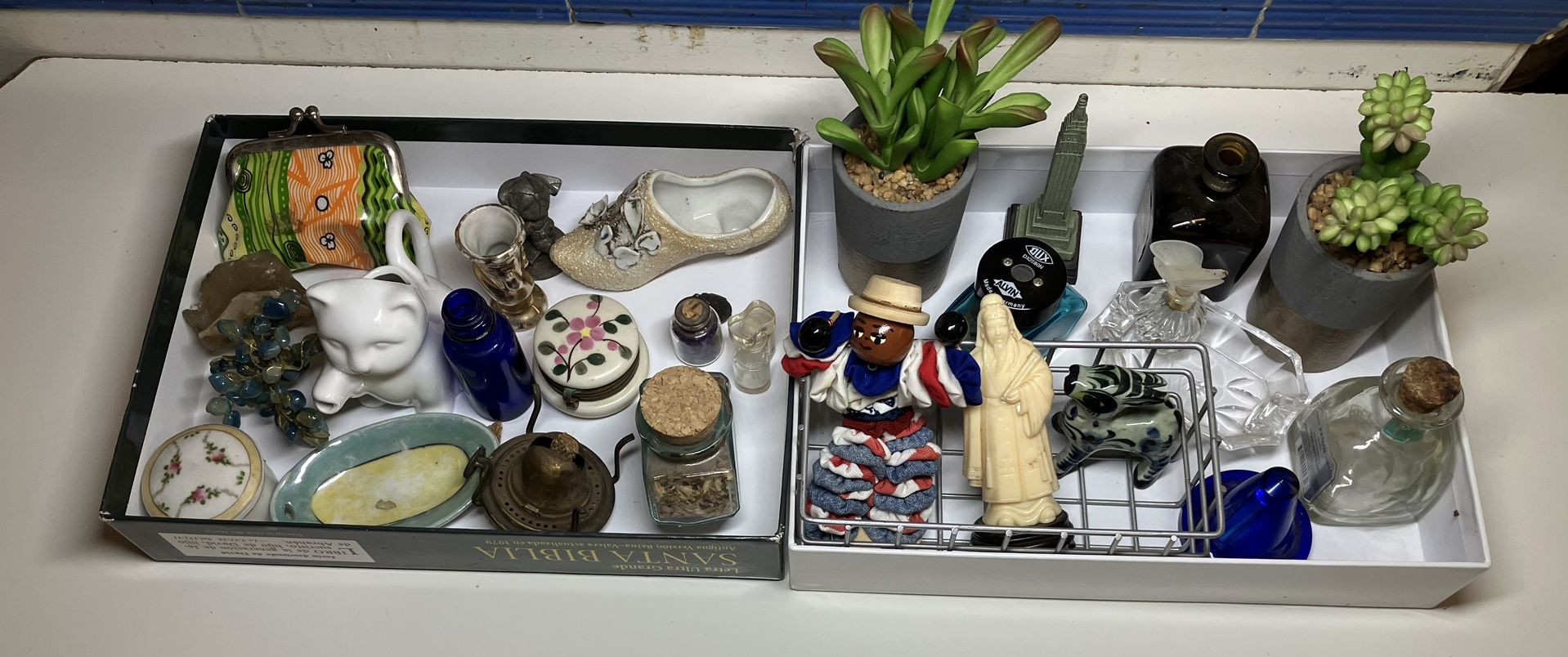Lot 26 Different Sizes Decorative Miniatures:Pill Boxes, Figurines, Dish, Perfumes, Shoe, Plants, Bottles