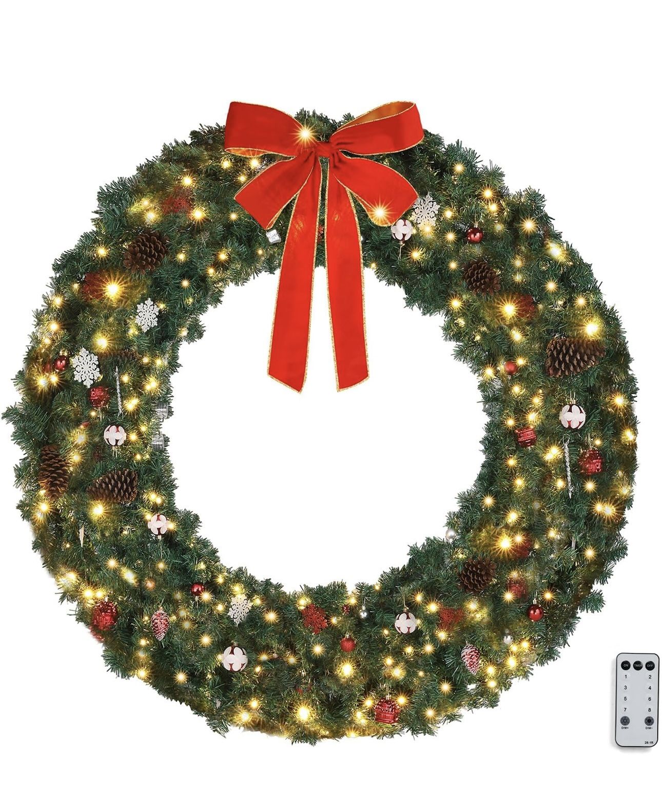 VINGLI 72" Plug-in Grand Pre-lit Outdoor Christmas Wreath