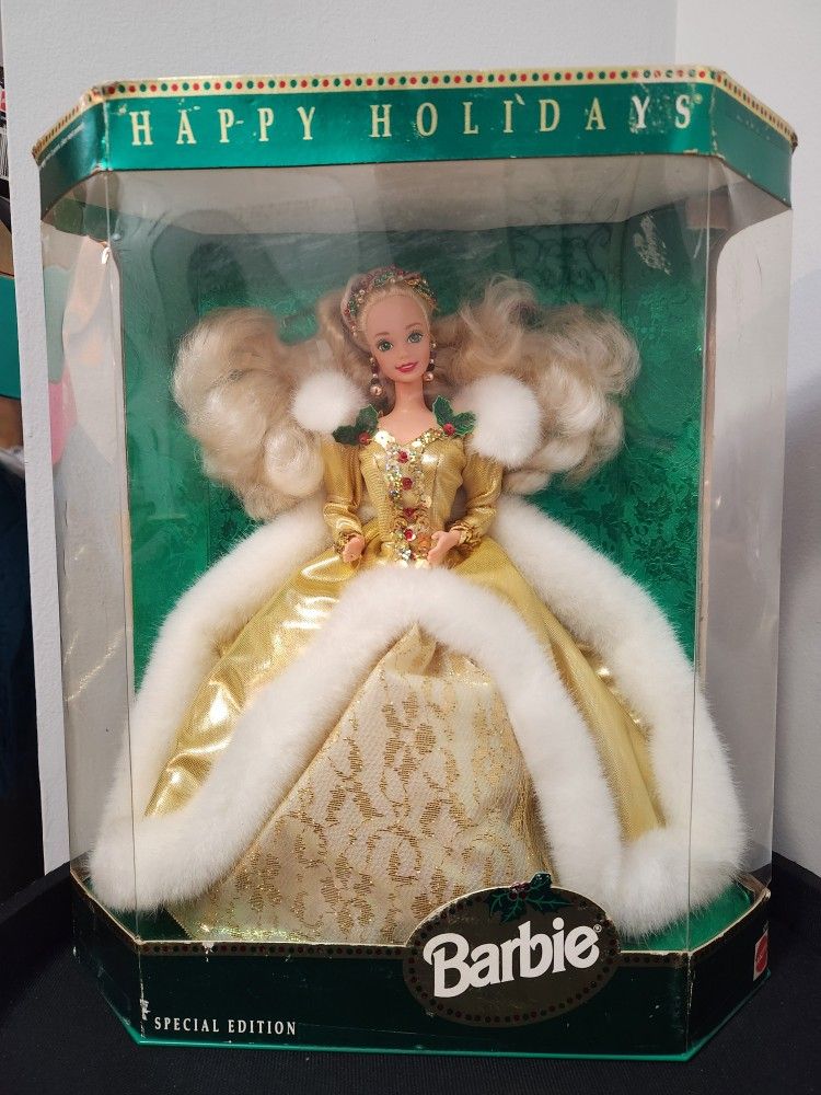 1994 Holiday Barbie- gold dress, box error $50 All are NIB/NRFB. SHIPPING AVAILABLE FOR ADDITIONAL FEE.