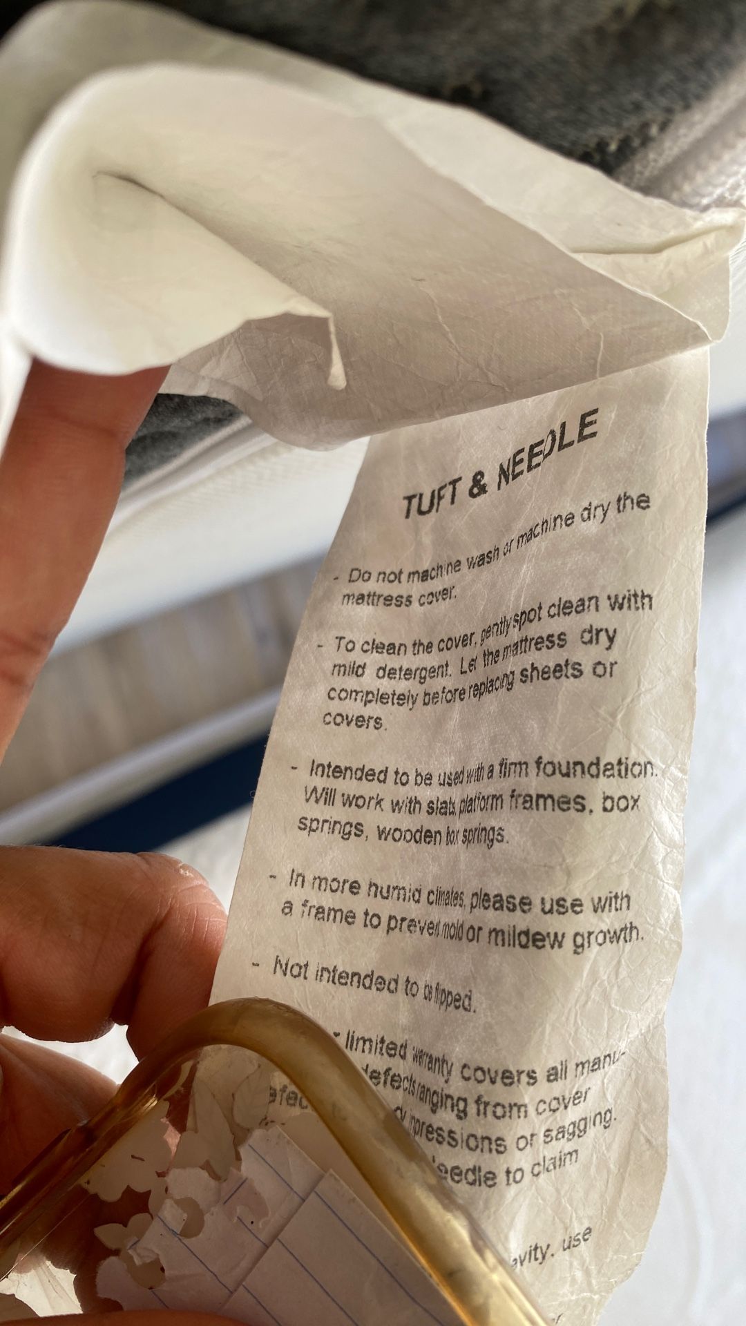 King size tuft and needle bed. Paid $1600 Been in mattress cover for one year. Extremely comfortable. Must pick up.