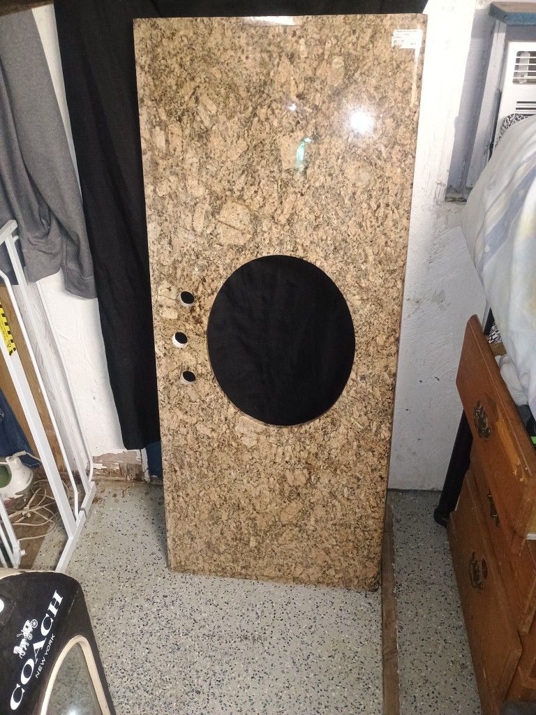 22.5'' Wide X 35.5'' Long Has rounded front finish Sink hole for the flush mount sink is already polished 3/4 inch think granite