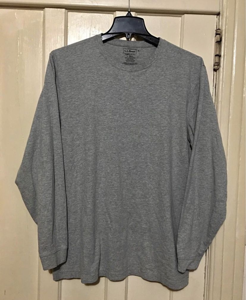 In good condition MENS crew neck shirt size LTall by llbean, 100./. Cotton, gray color.