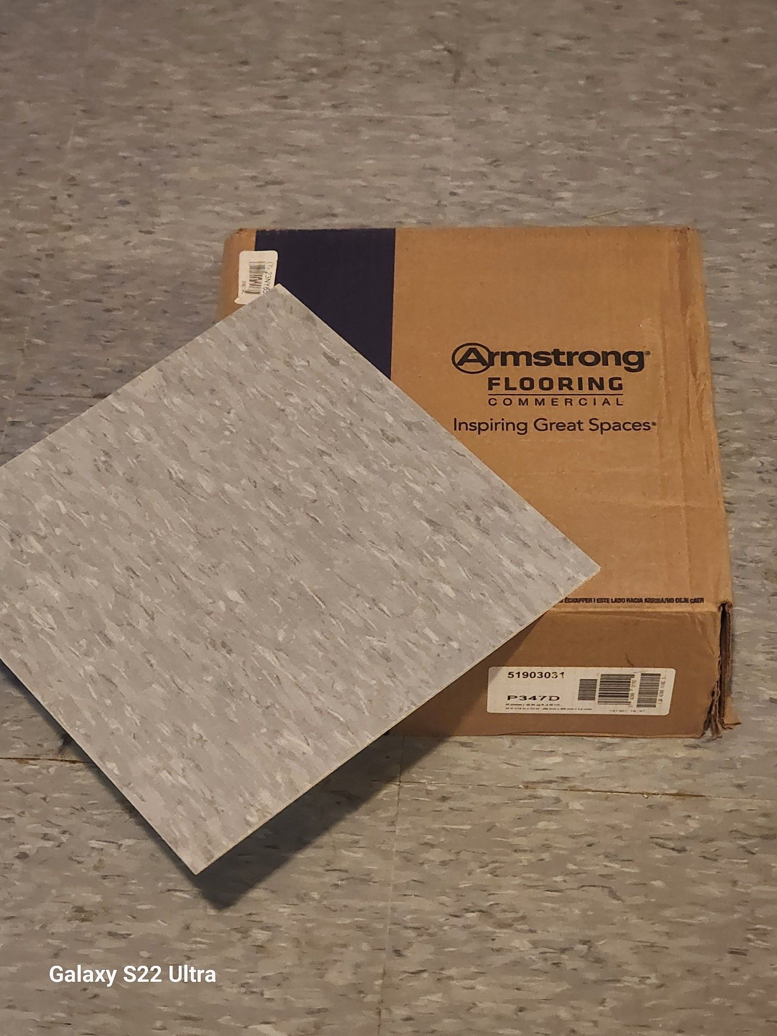 These 16 boxes of Armstrong 12”x12” blurgy Vnl Flrtle Tiles are brand new in box. $100 each box, at Walmart for $130 a box. Two runs slight different tone, but same color.