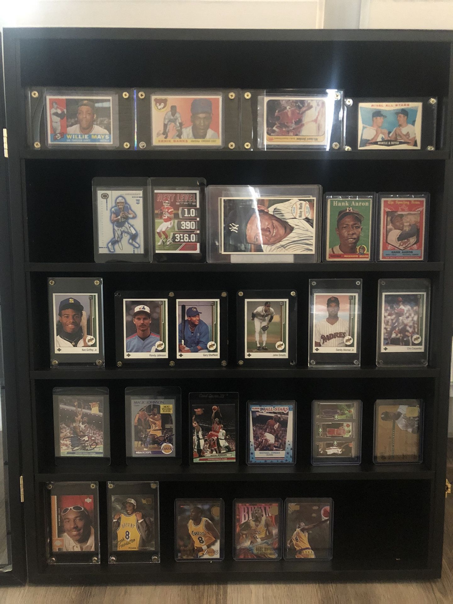 Vintage baseball cards: Ernie Banks 1955 Topps, Willie Mays 1960 Topps , 1958 hank Aaron, 8 - 1964 Topps giants HOFs , Mickey Mantle, 1986 Micheal Jordan rookie sticker, 1989 Ken Griffey jr. Rookie, 1989 Randy Jonson rookie, 5 Kobe Bryant Rookies , Lebron James rookie, Magic Johnson autograph card, Shaquille O’Neal autograph card, Justin Herbert rookie autograph card, Patrick Mahomes autograph card, 1964 Topps giants: Mickey Mantle, Sandy Koufax, Bob Clemente, Hank Aaron, Al Kaline, Carl Yastrzemski, Brooks Robinson, Harmon Killebrew . John Smolts 1989 UD rookie card, Sandy Alomar 1989 UD rookie card, Gary Sheffield UD 1989 rookie card and more . Asking $10,500.00 or best offer. All my cards are the real deal . I don’t collect reprints and we’ll aware of it. 1960 Topps Willie Mays looks a grade 8.5 or 9 / Ernie banks 1955 Topps looks 9grade . I’m not gonna go lower than $9,000.00