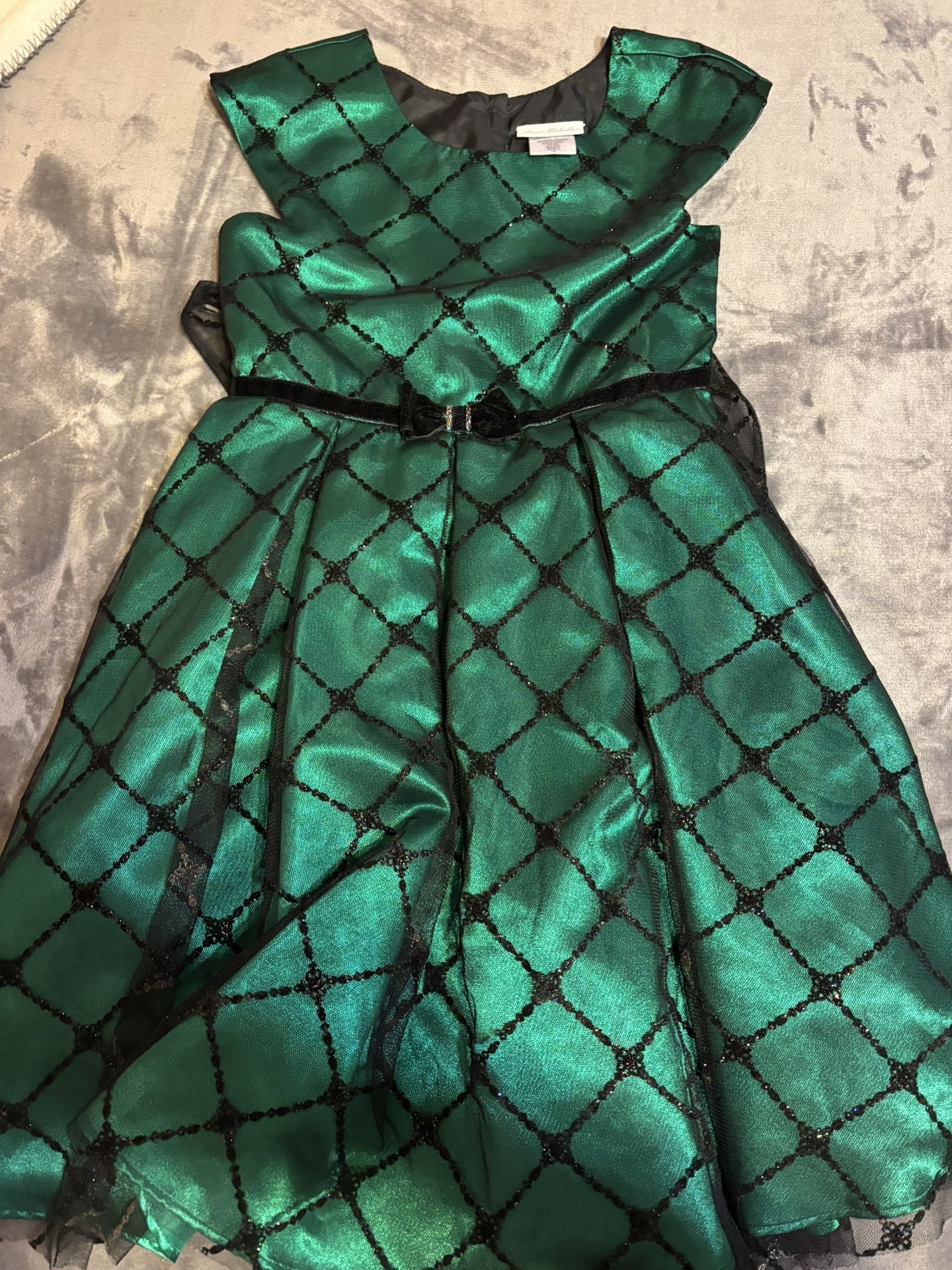 Beautiful green dress with black lace over. Perfect for the holidays or Christmas recitals. No tears, no stains, great condition. Size 12 girls. Cash only