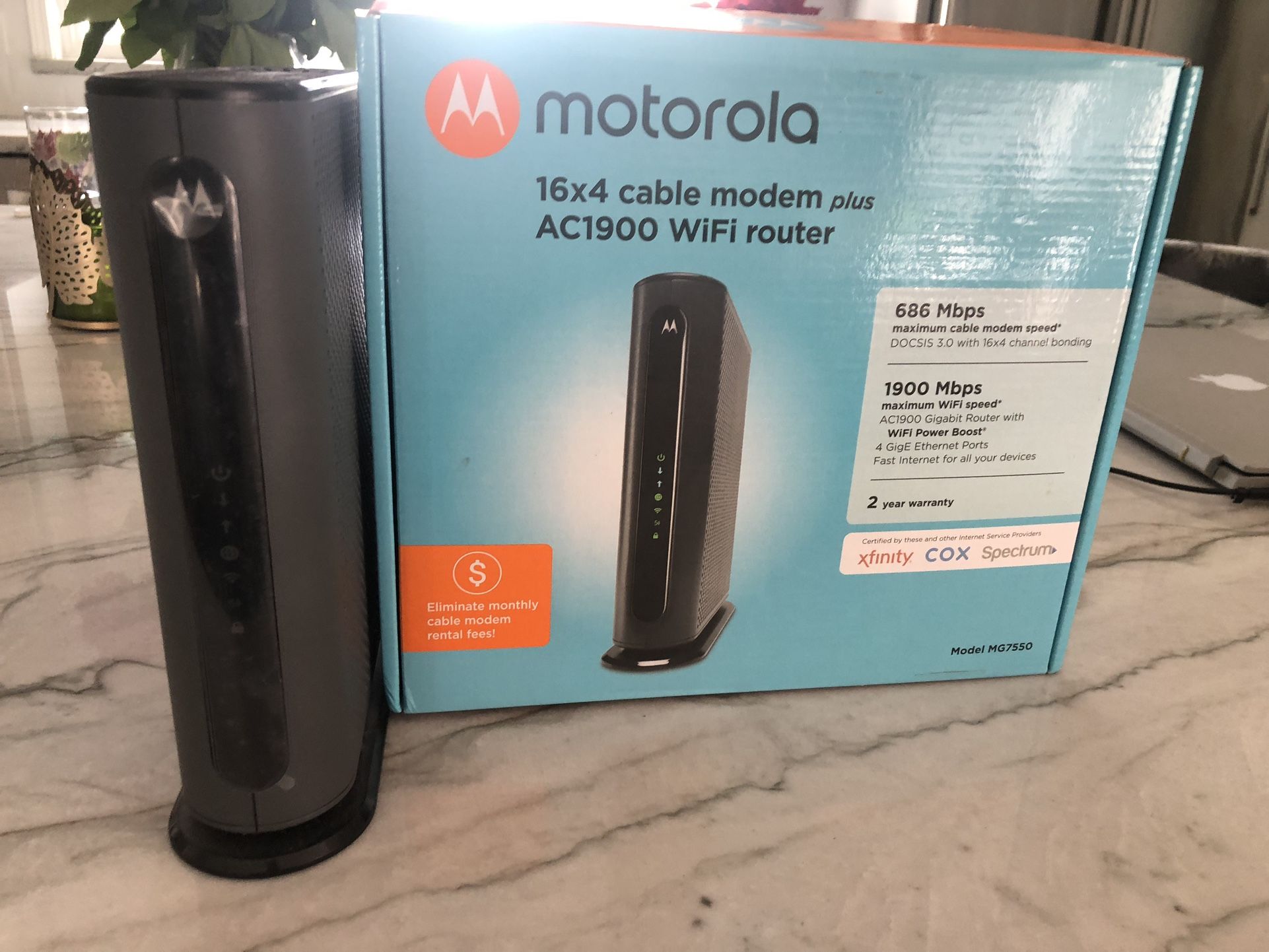Motorola AC1900 modem and WiFi Router. compatible for Xfinity, Spectrum and COX Internet Service Providers