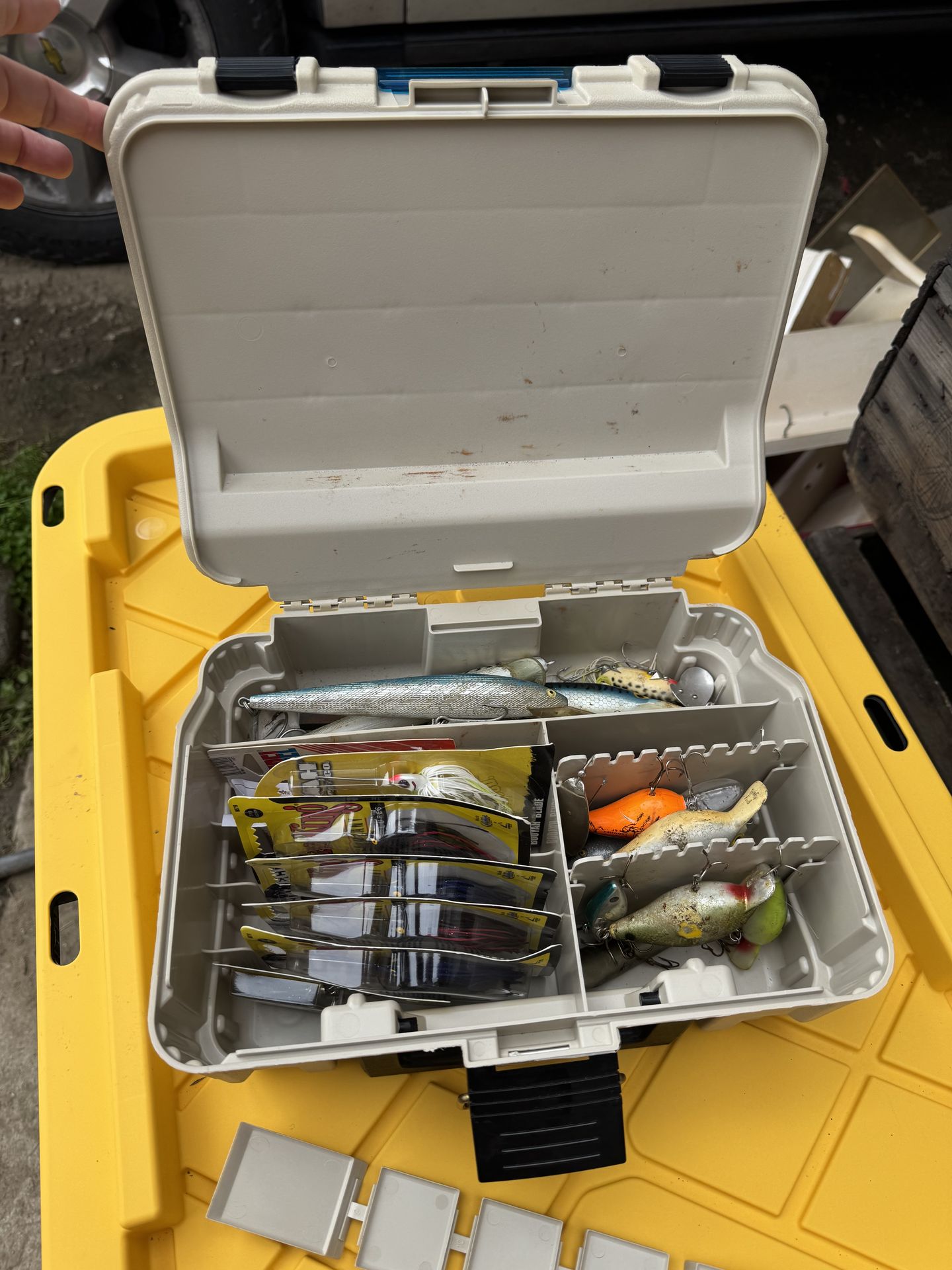 Tackle box with a bunch of lures. Asking $40 for all of it.