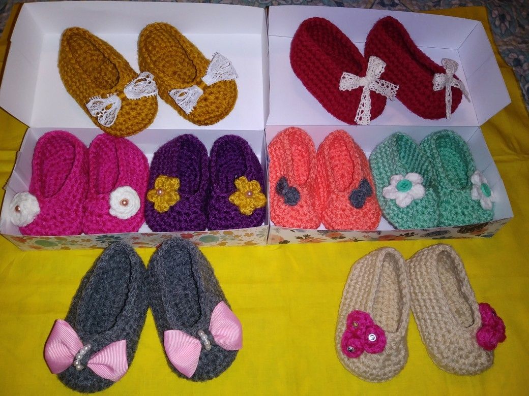 PLEASE READ. PRICES VARY. All handmade by me. These are all finished and ready to go. They will come in a cute little box, so they are gift ready!! Prices vary and are posted on bottom. Add a headband or hat to any pair to make it a set, or add both!! Pick up in Crosby or I can mail for an additional shipping cost. Don't see the color you like? Just ask!! Yes, I make other things as well :) Booties $10 Booties & tie headband $12 Booties & wide headband $14 Booties and beanie $16