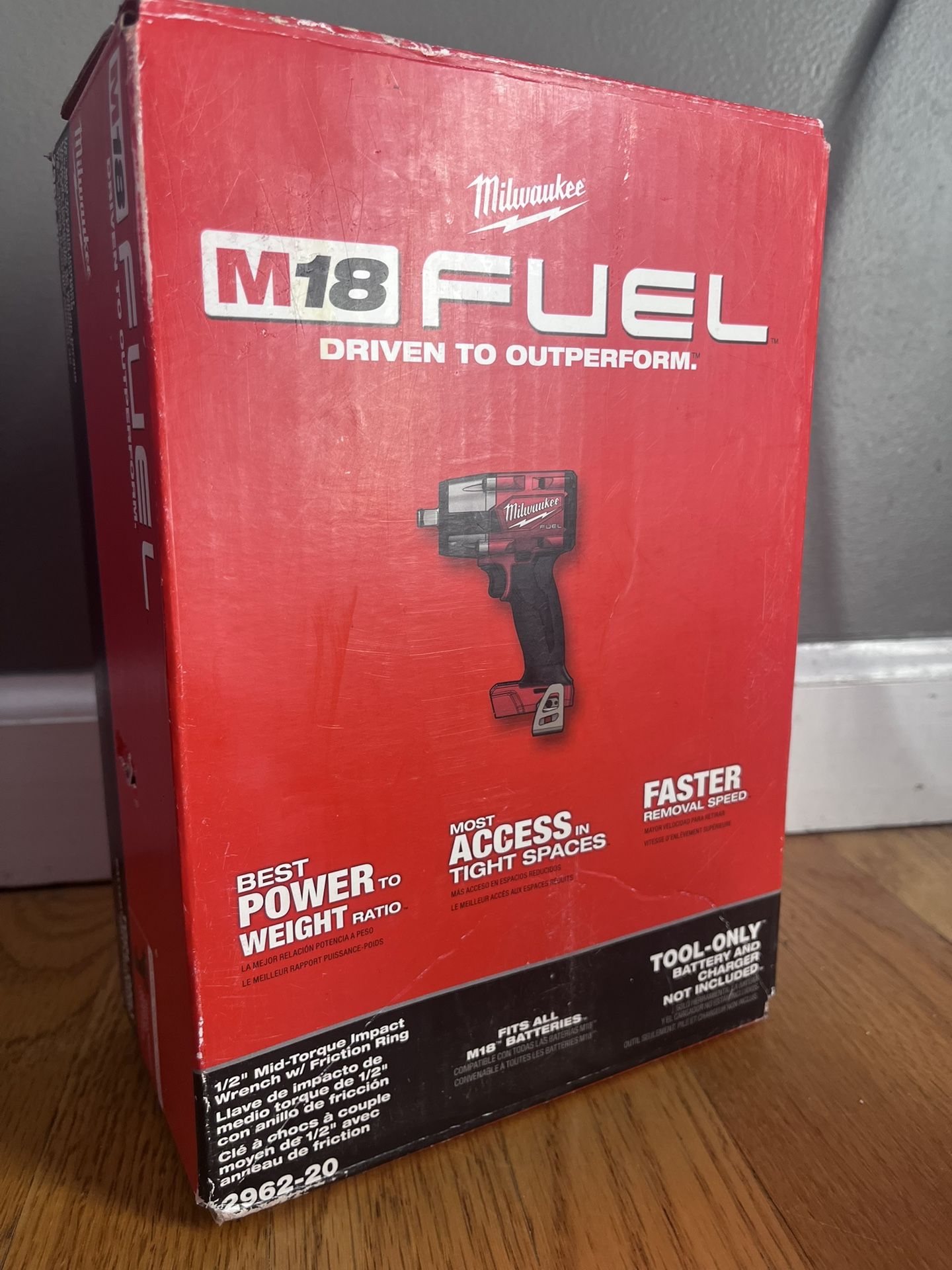 Milwaukee M18 FUEL Mid-Torque Impact. Model 2962-20. Perfect for automotive work where space is tight but you still need power