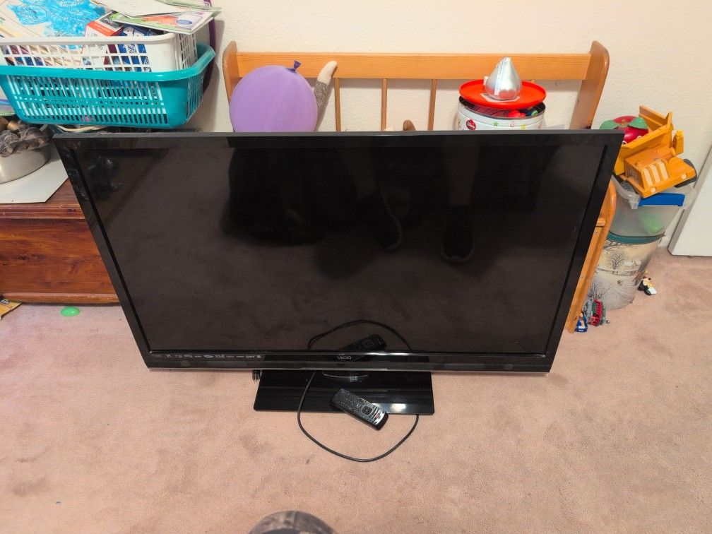 Older tv works great with remote . We bought smart tv to replace it. Probably a mistake cause new ones don't last that long . It's not a smart tv but works great. I think it's 55 inch but not sure.