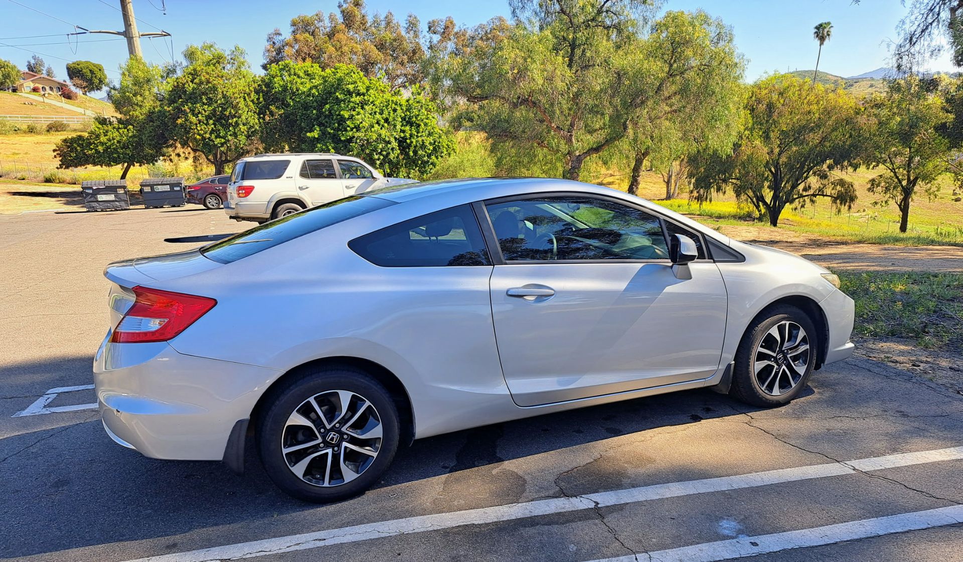 2013 Honda Civic EX coupe in great condition for sale. Clean title, leather seats, backup camera, sunroof, tinted windows, new paint, 156, 094 freeway miles, well maintained with records from 2019.