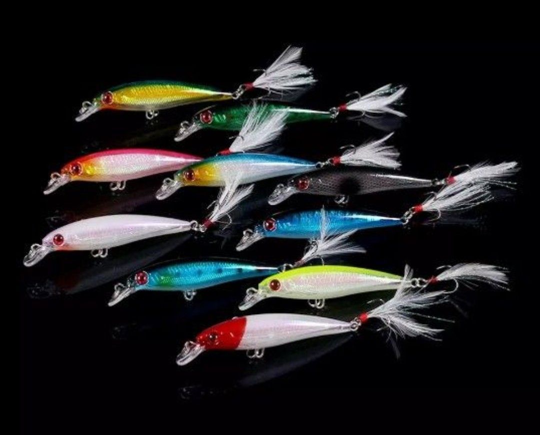 Fishing Lures wobbler 10pack lot. Approximately 4"long. Metal vibration balls inside the body to attract big predators and balance performance of the lure. Excellent quality and performance. Brand new 10pack lot