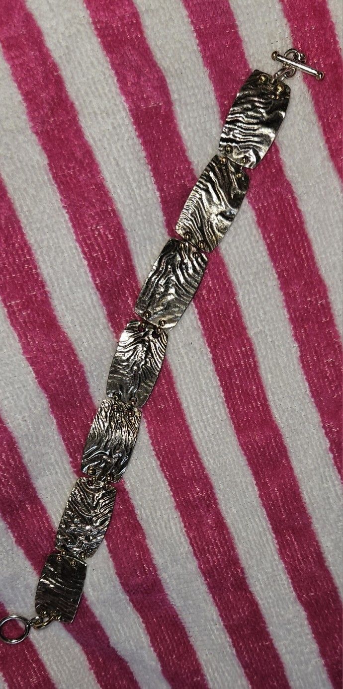 One Of A Kind Hand Made Sterling Silver Bracelet With Gold Links