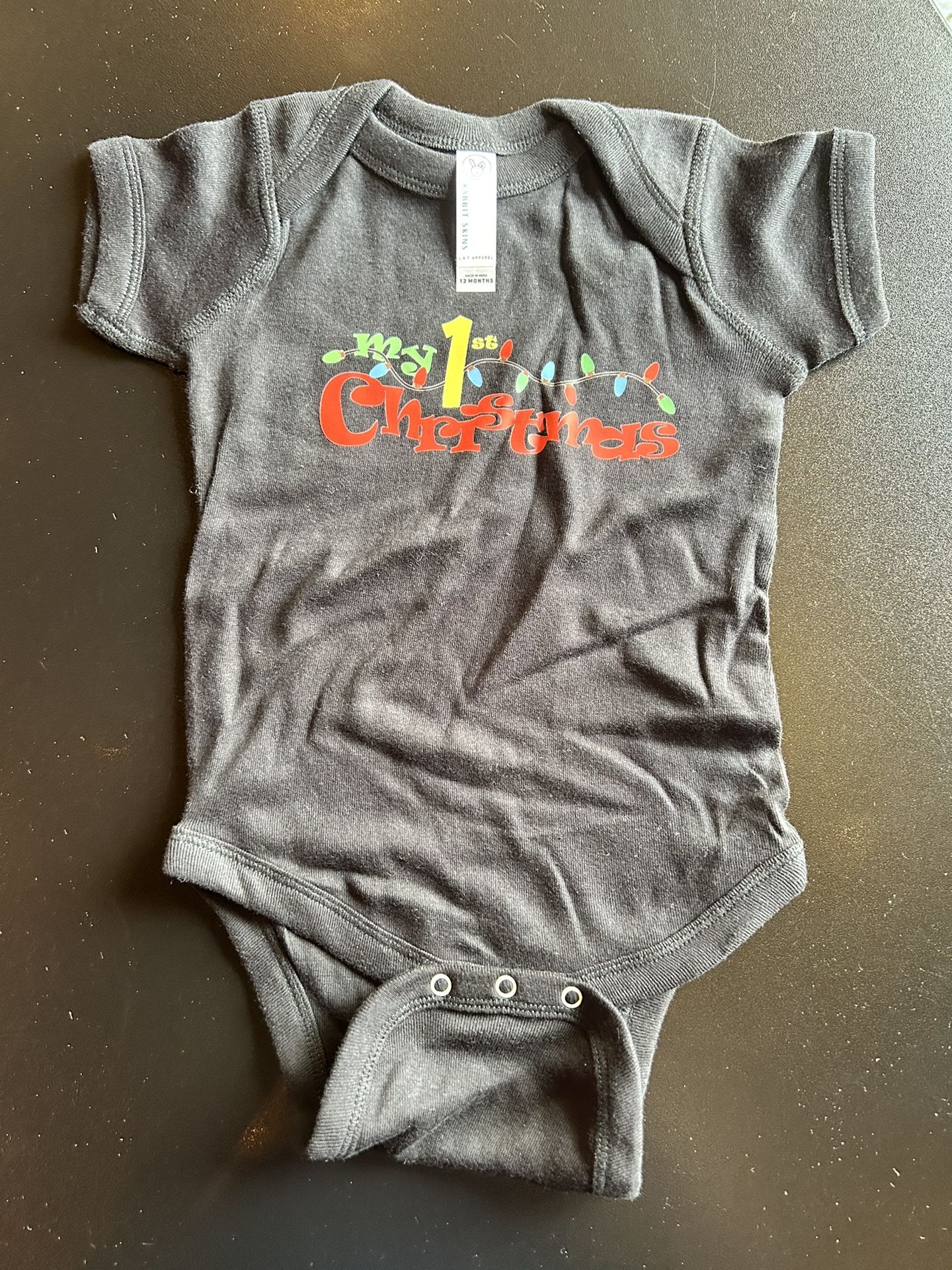 My 1st Christmas onesie! This is sized 12 months and is gender neutral. A great addition to your baby's first christmas outfits! I have many sizes available if this one doens't work out for you please let me know! I make these to order, this one is available now.