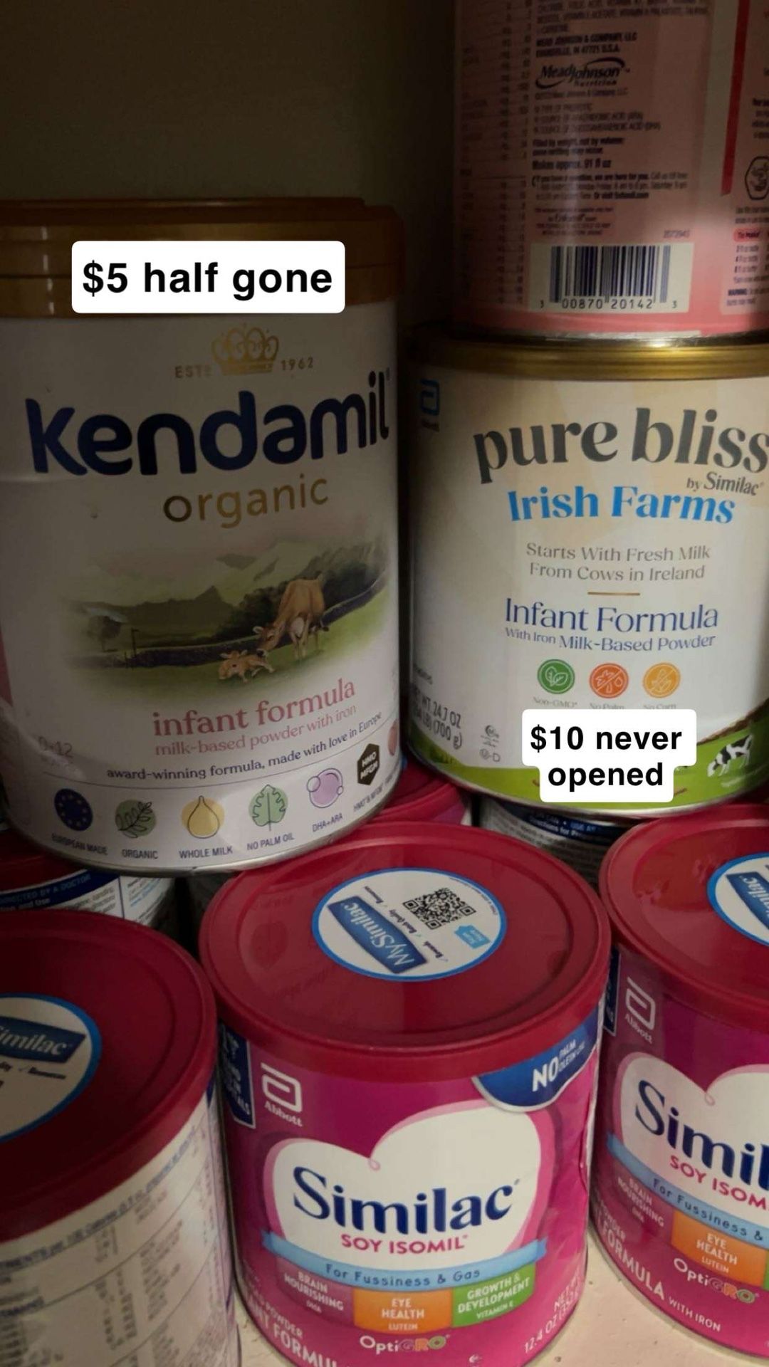 Baby Formula for Sale – Pickup Only • Similac 360 Total Care (opened) – $30 • Similac Soy (unopened)– $10 each • Kendamil (opened) – $5 • Similac Pure Bliss (unopened) – $10 • Nutramigen (1 can, opened) – $5 Message me if interested. First come, first served. Three cans are opened. I only used one scoop from each. The Kendamil is about half gone. I started combo feeding and finally found a formula that works good for my baby.