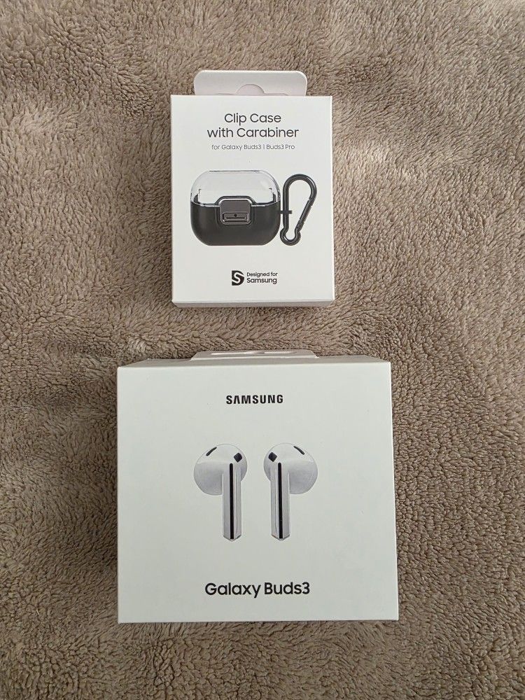 Samsung Galaxy Buds 3 earphones, brand new, unopened, comes with 1 year Samsung warranty. Samsung Clip Case with Carabiner, brand new, unopened. Got it as a gift, never used it. Only serious enquiries, not interested in low-ball offers, we can meet at a public place near Edison, NJ and you can thoroughly inspect the phone before buying. Thank you.