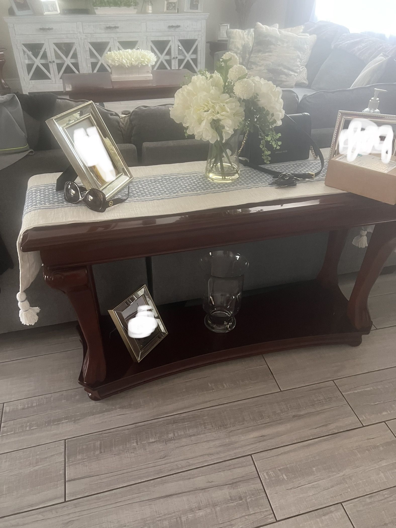 4 pieces: 2 small tables, middle table and a console table. My mother in law has had for 23 years. Great condition! Or best offer