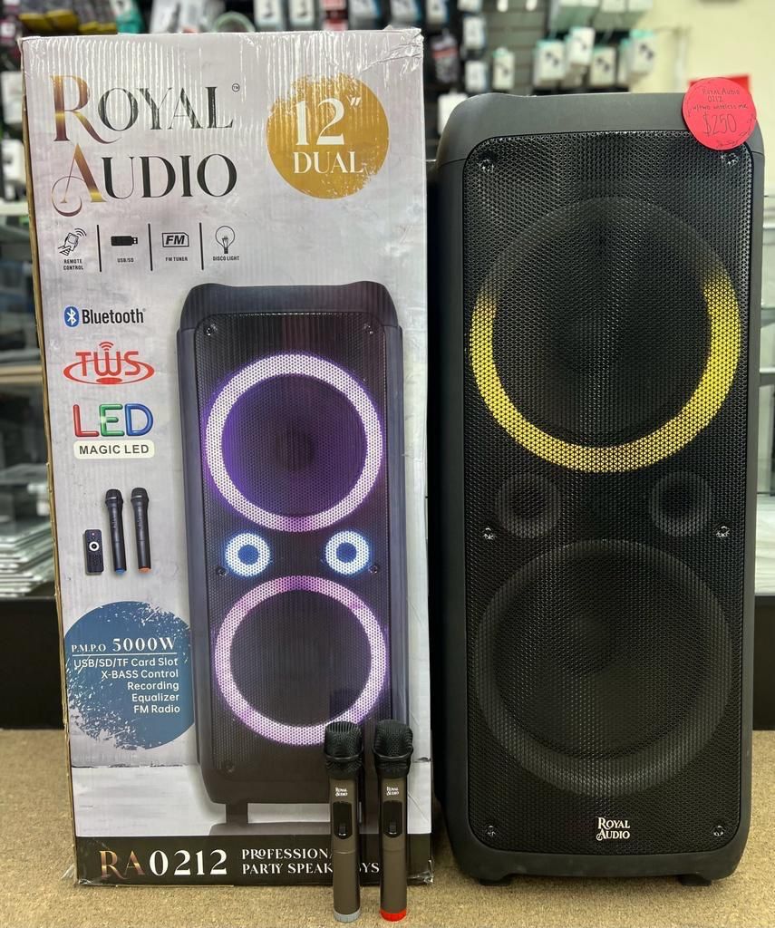 - Dual 12" Woofers - Bluetooth USB Drive Mp3 Player SD Card Mp3 Player Micro SD Card Mp3 Player FM Scan Radio, RCA Auxiliary - One 1/4" Microphone Jack Volume, Treble, Bass, and Echo Controls - One 1/4" Guitar Jack Volume Control - 7000 mAh Lead-Acid Battery 12V External Battery Input. - included 2 wireless microphones Remote control Charger