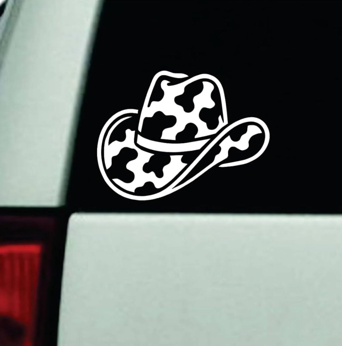Cowboy Hat Cow Pattern Car Decal Bumper Sticker Vinyl Window Mirror Cute Girls