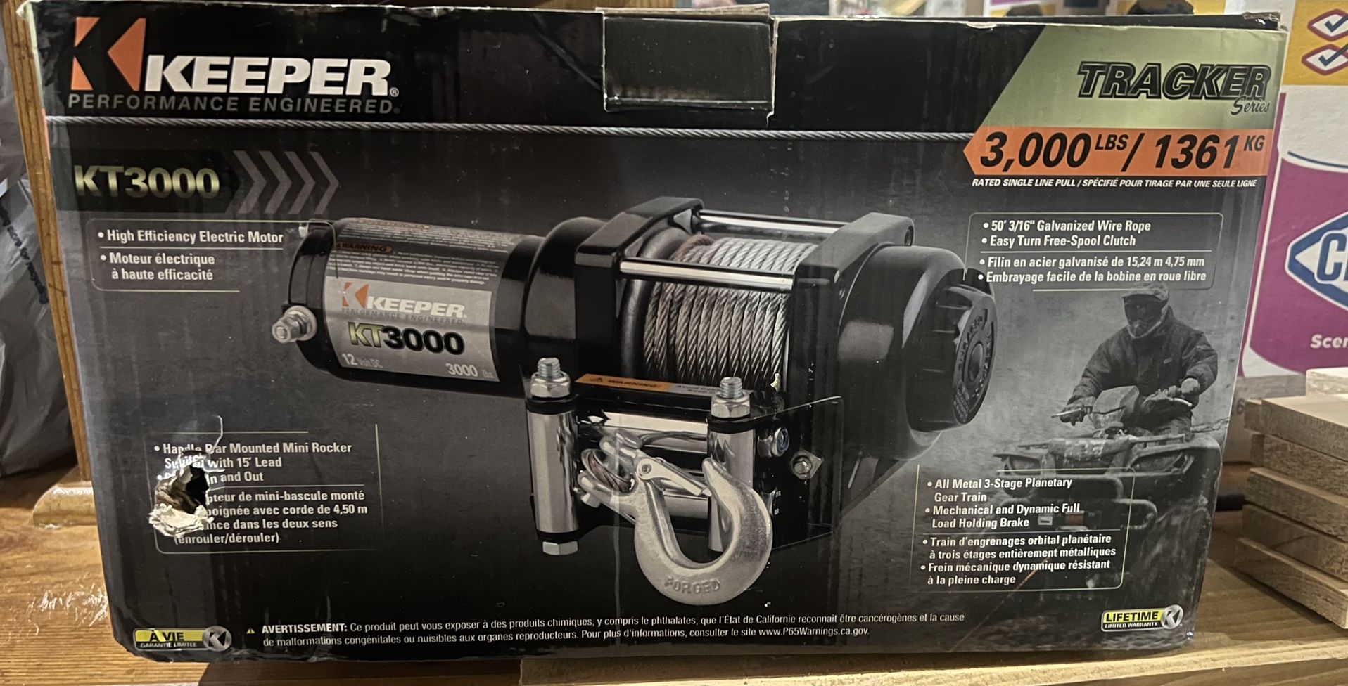 Keeper electric winch, 3000 lb. Single line pull, 12V DC, Black. New in box. Pickup only. No trades, cash only. No bs. Retails close to $300. On Amazon.