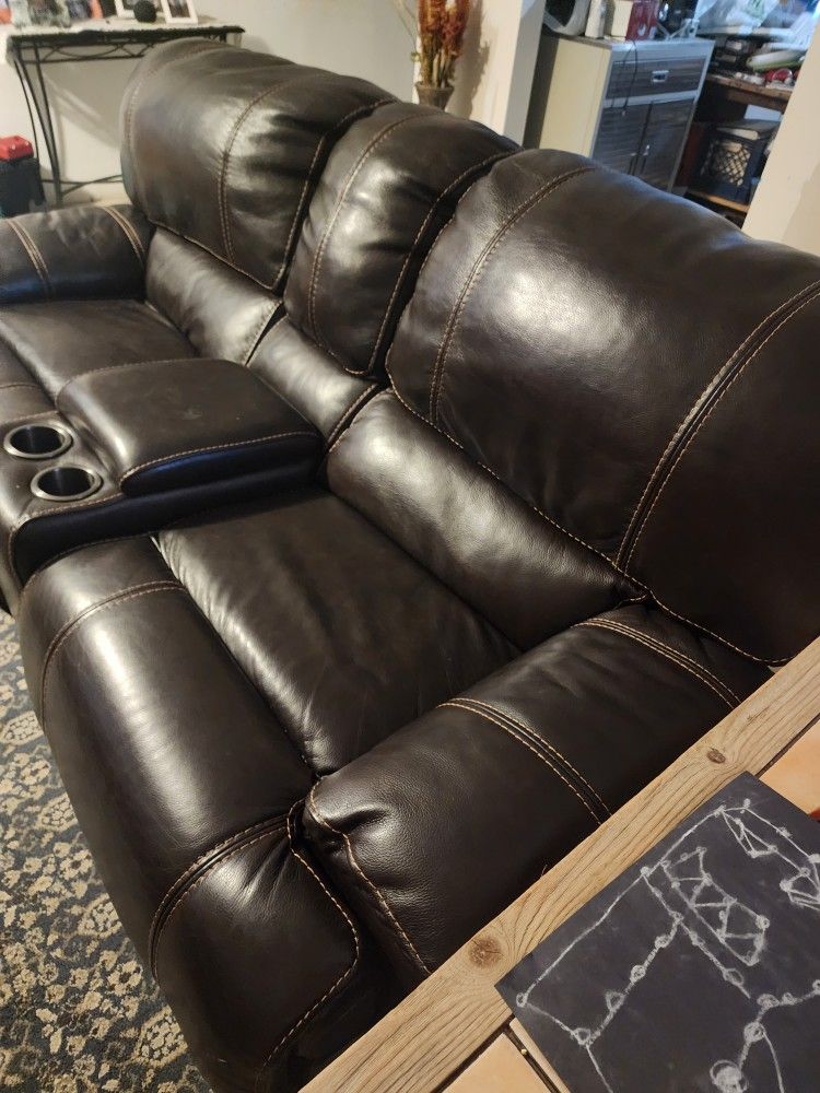 All Electric Leather Loveseat With Consol