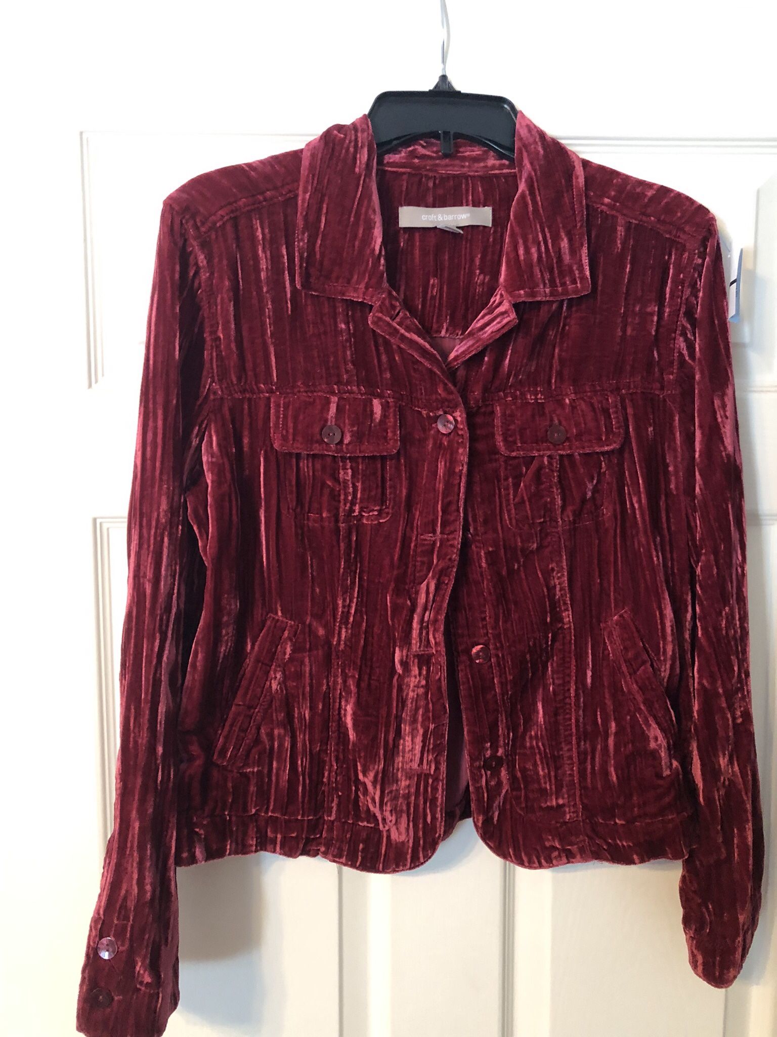 Croft & Barrow Crushed Red Velvet Button Up Jacket